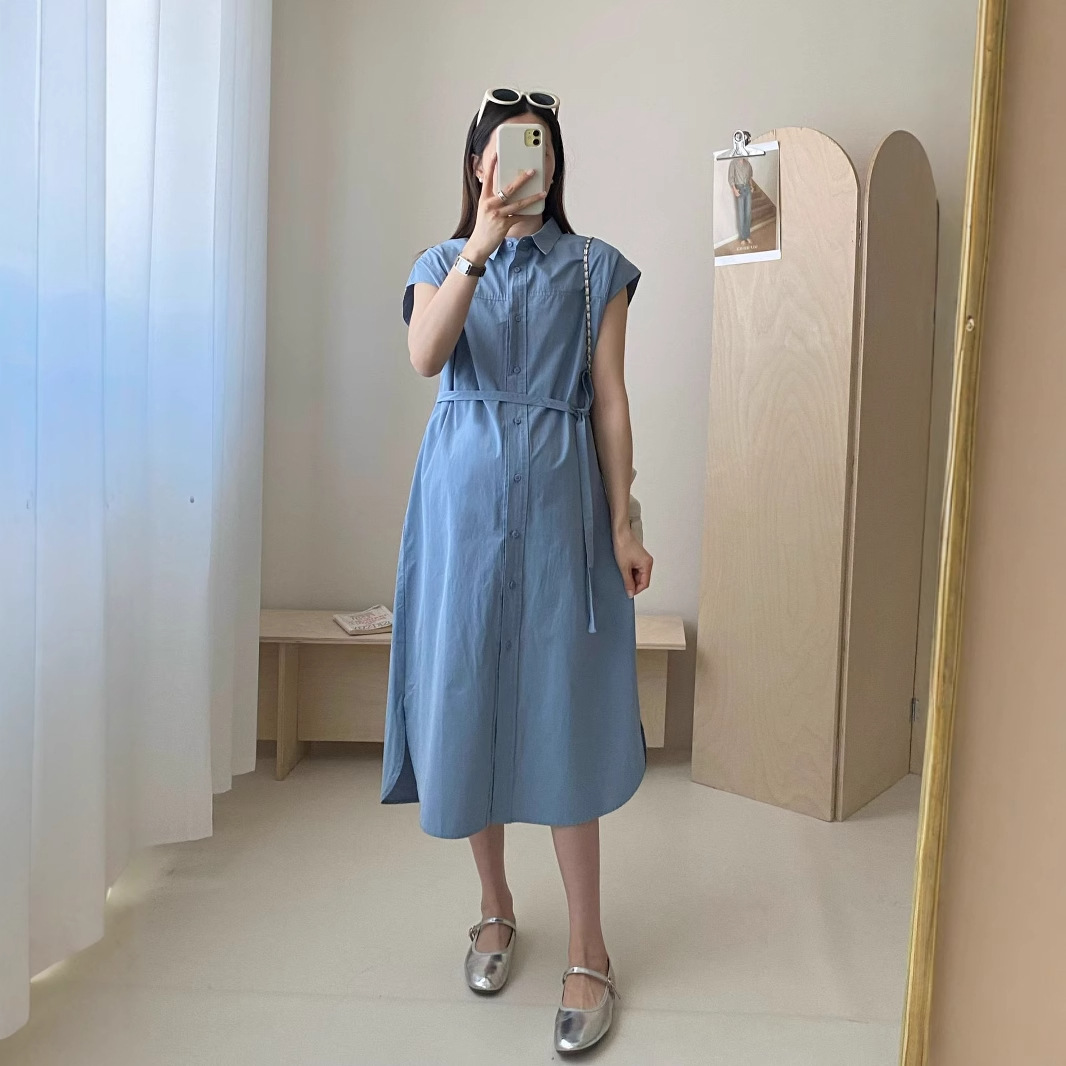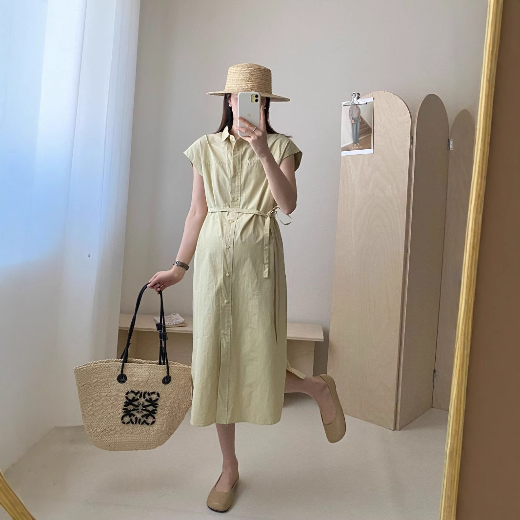 Модная французская одежда для беременных с отворотом беременная рубашка юбка летние удобные свободные хлопчатобумажные платья материнства