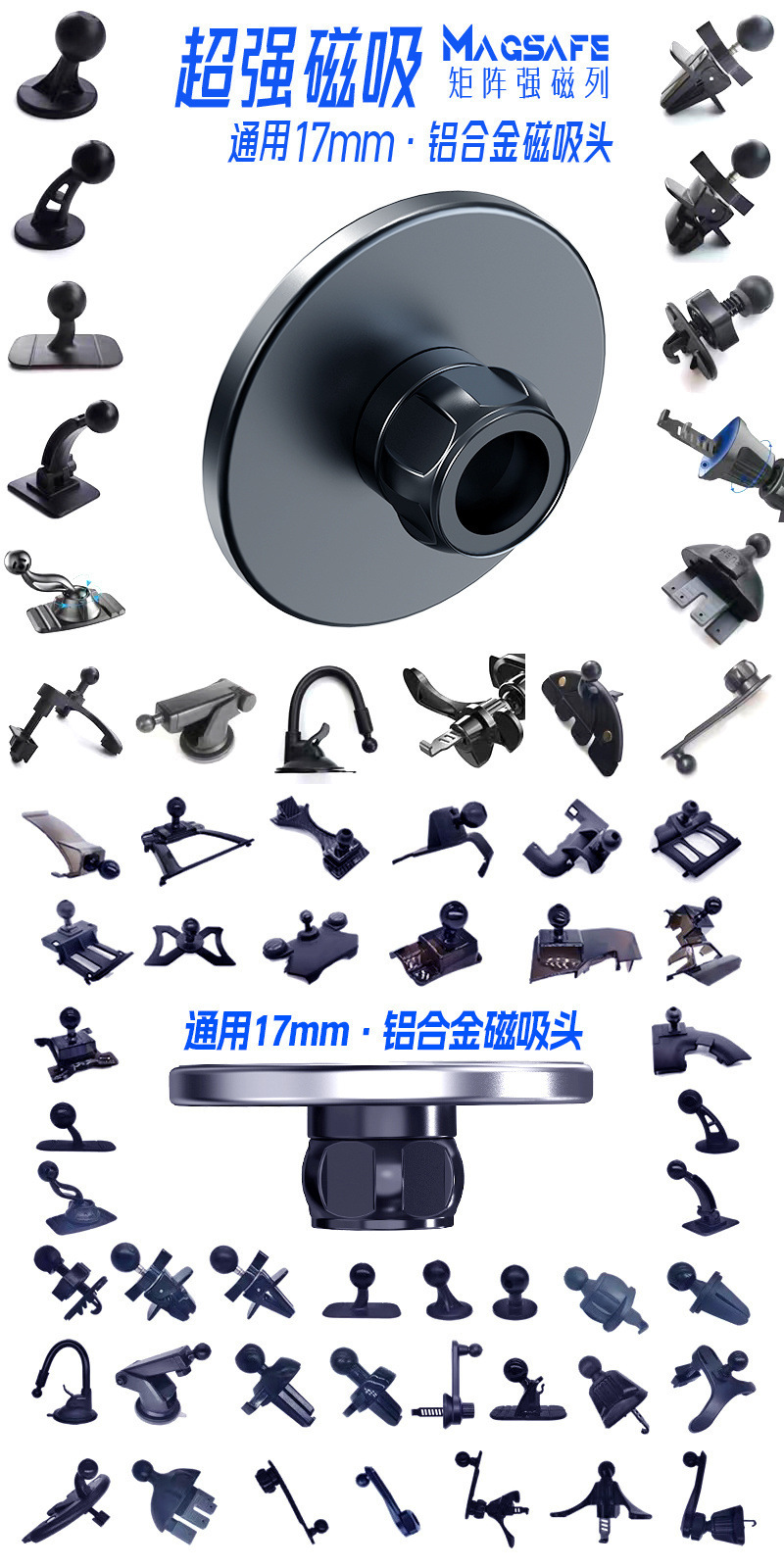 Магнитный всасывающий шаровой наконечник MagSafe алюминиевый сплав 17 мм универсальная регулировка автомобильный телефон универсальный магнитный всасывающий автомобильный кронштейн