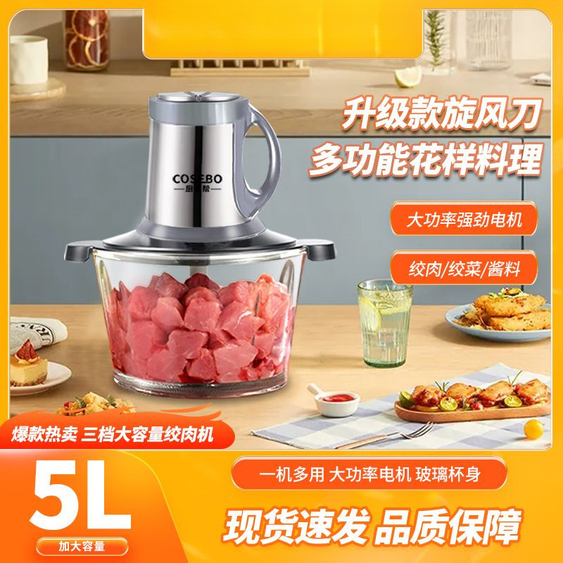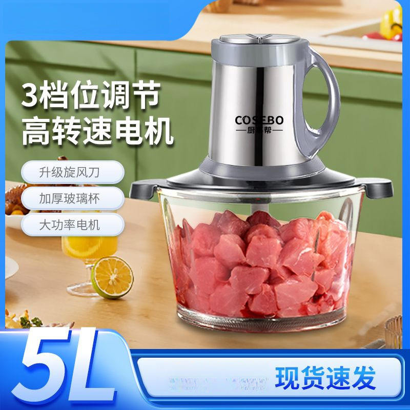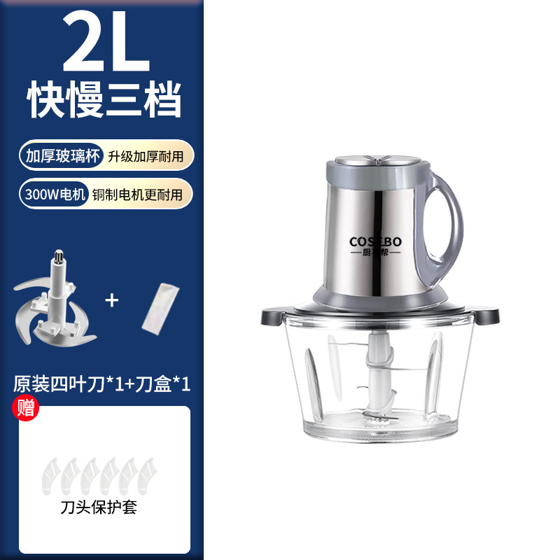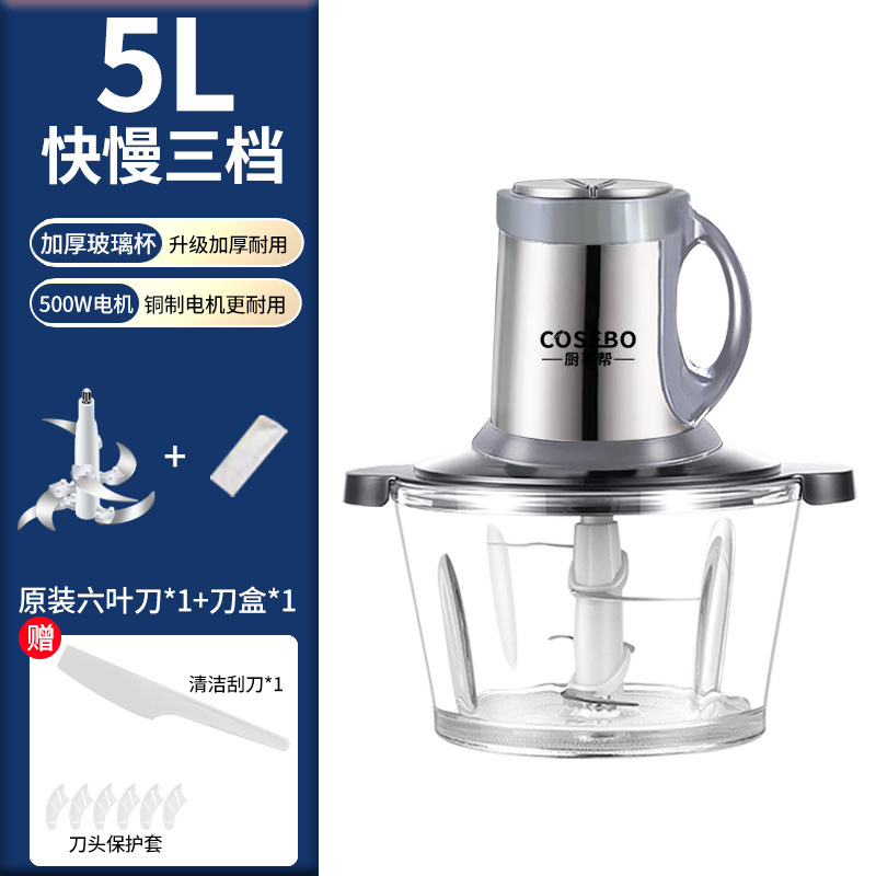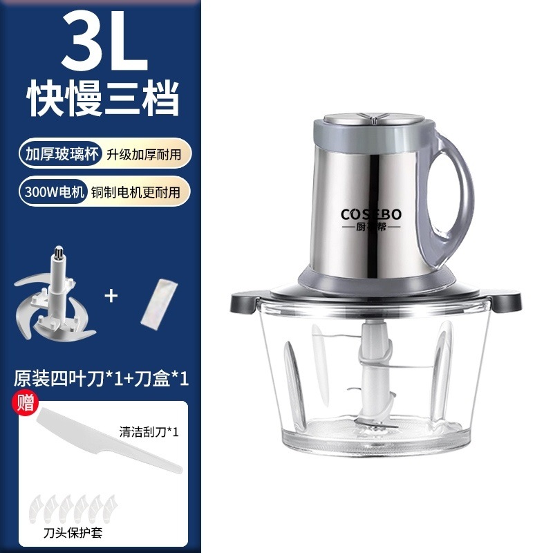 Стеклянная мясорубка объемом 2 литра [резец на 4 страницы]; 3 литра утолщенного стекла [толщина видна]; 5 литров утолщенного боросиликатного стекла [большая емкость, 6-страничная циклонная режущая головка]