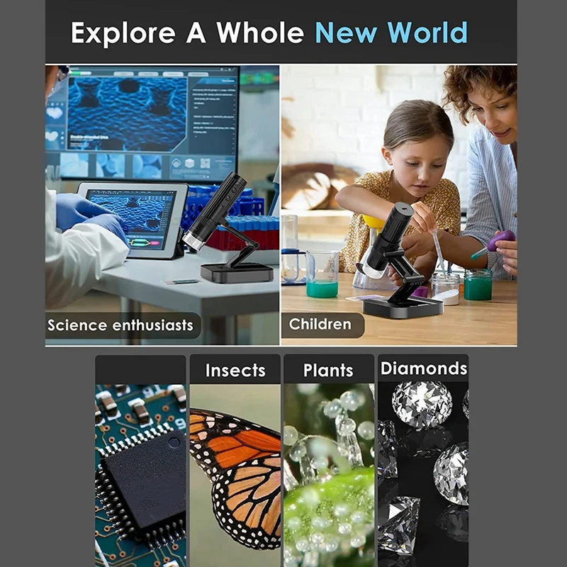 Новая модель с подставкой W1B HD 2 миллиона 1000 раз 1080P HD Wi-Fi беспроводной цифровой микроскоп