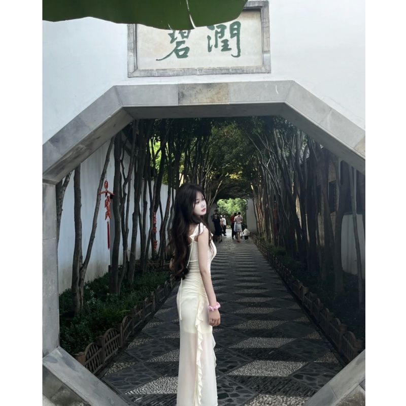 Сладкая и пряная девушка, чистый ветер, маленькие летающие рукава с открытыми вилками, подтяжка, женская летняя талия тонкая, нерегулярная сетчатая юбка