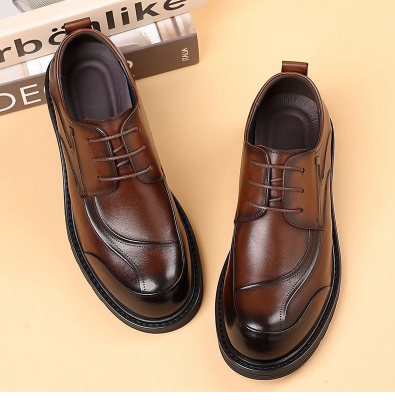 2025 новый стиль мужской бизнес повседневная кожаная обувь с большой головкой на шнуровке модная британская универсальная мужская обувь