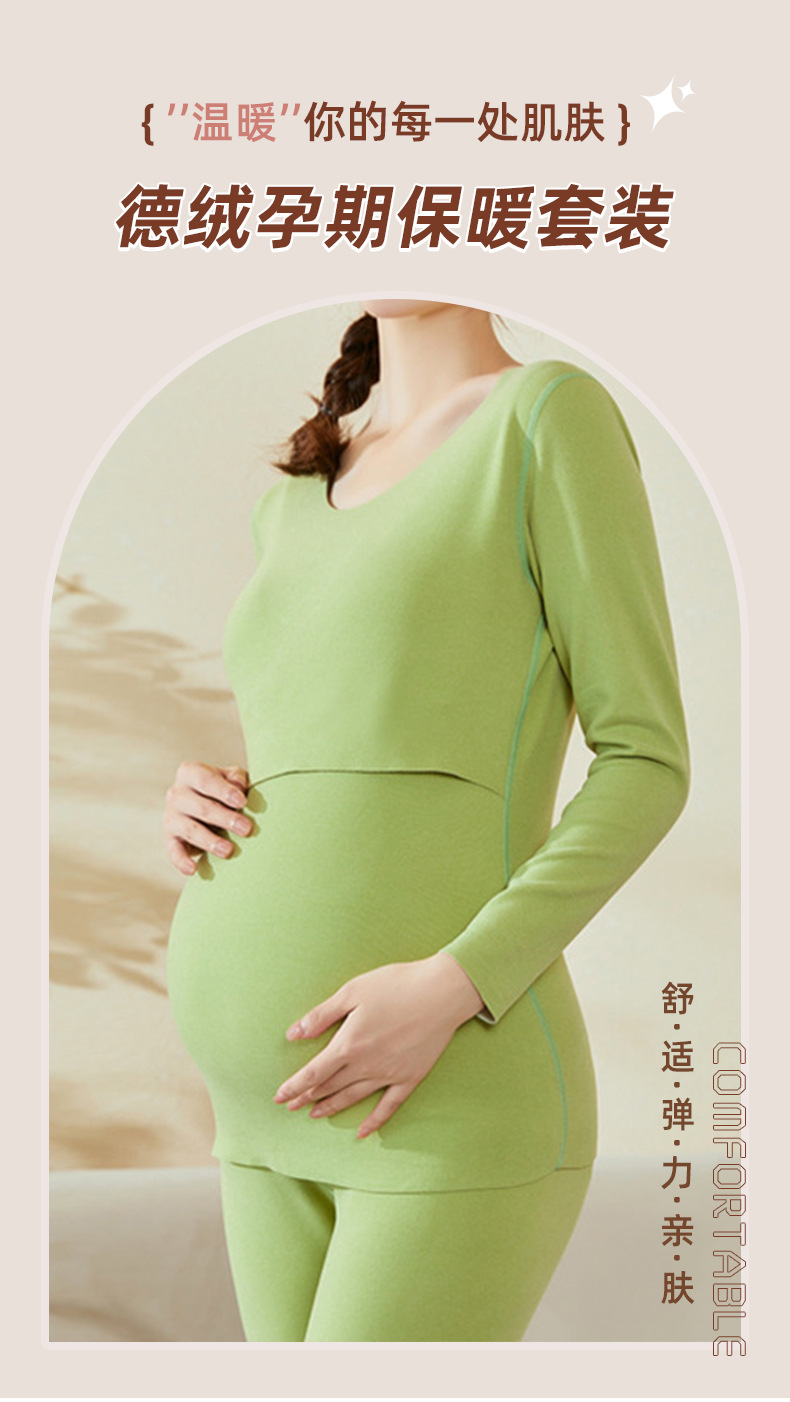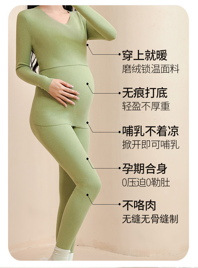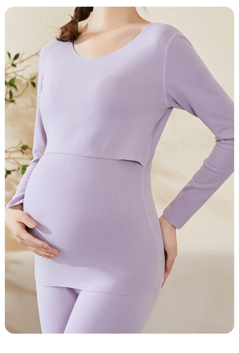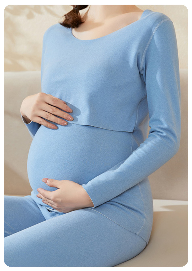 Термокомплект для беременных De Rong на флисовой подкладке, зимний стиль из чистого хлопка, термобелье для беременных и после родов, утолщенная базовая рубашка оптом.