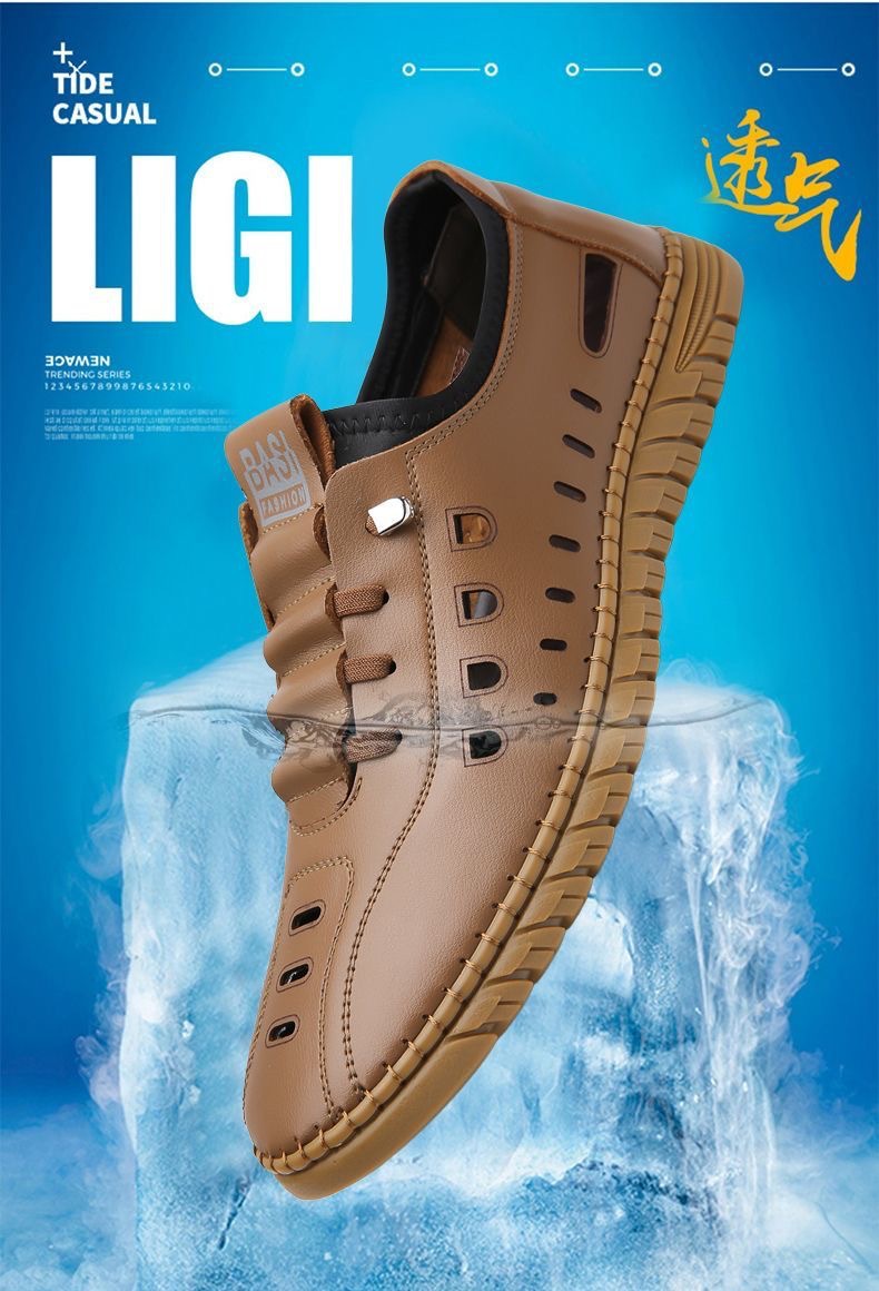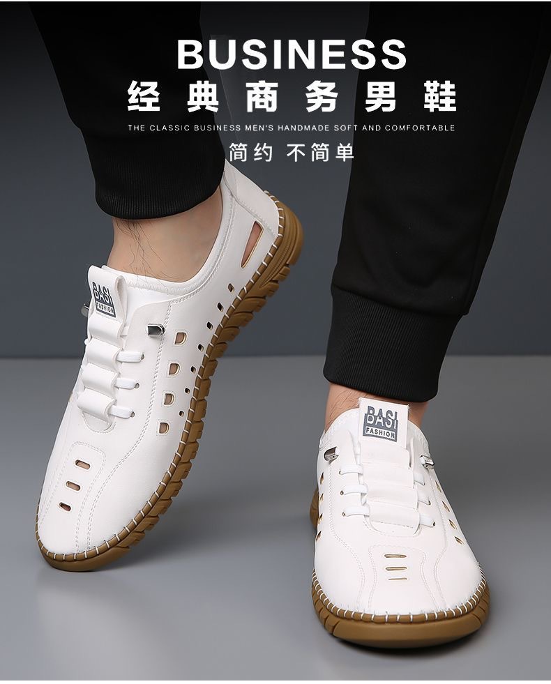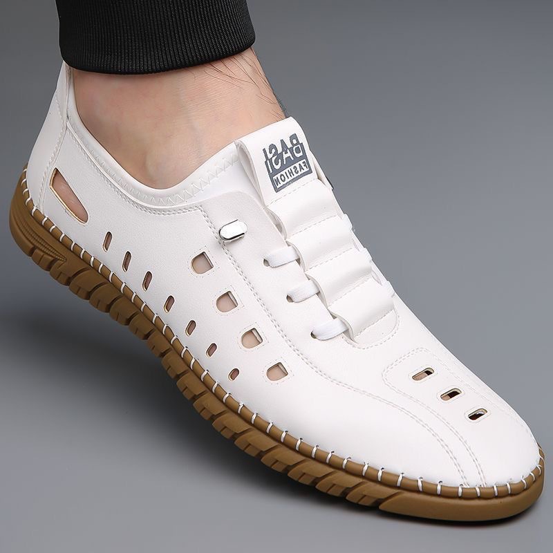 Полая повседневная кожаная обувь мужская летняя новая дышащая сетка дырочная обувь одна педаль плоская обувь мужская трансграничная оптовая продажа