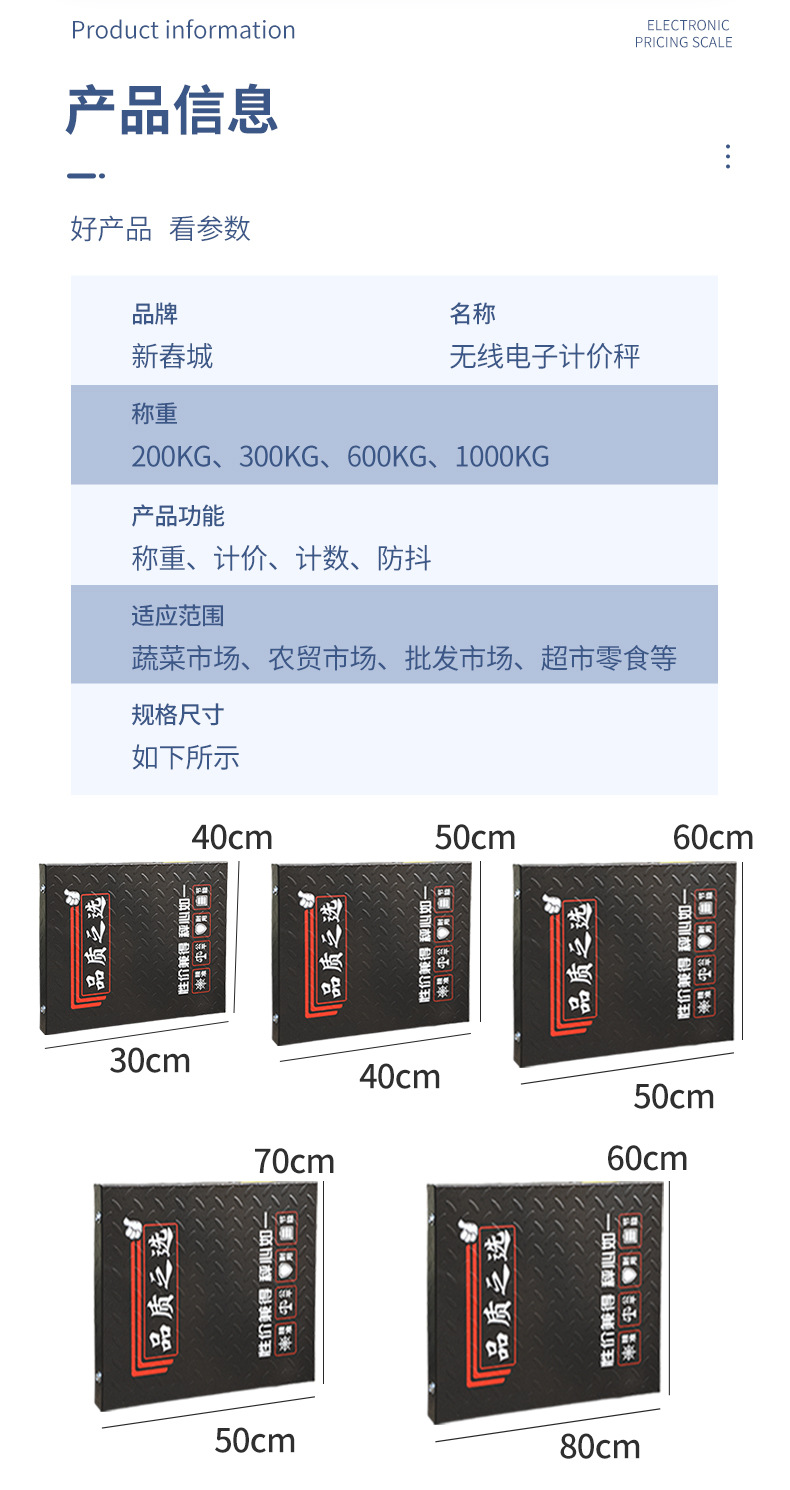 Беспроводные электронные весы для ценообразования 20*40 см, 200 кг; Беспроводные электронные весы для ценообразования 40*50 см, 300 кг; Беспроводные электронные весы 50*60 см, 600 кг; Беспроводные электронные весы для ценообразования 50*70 см, 600 кг; Беспроводные электронные весы для ценообразования 60*80 см, 1000 кг