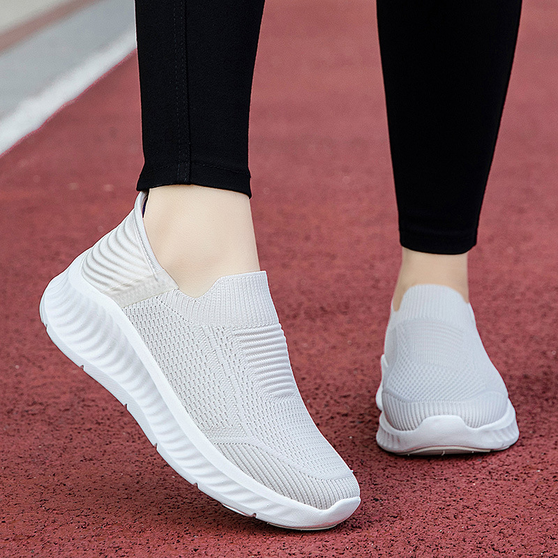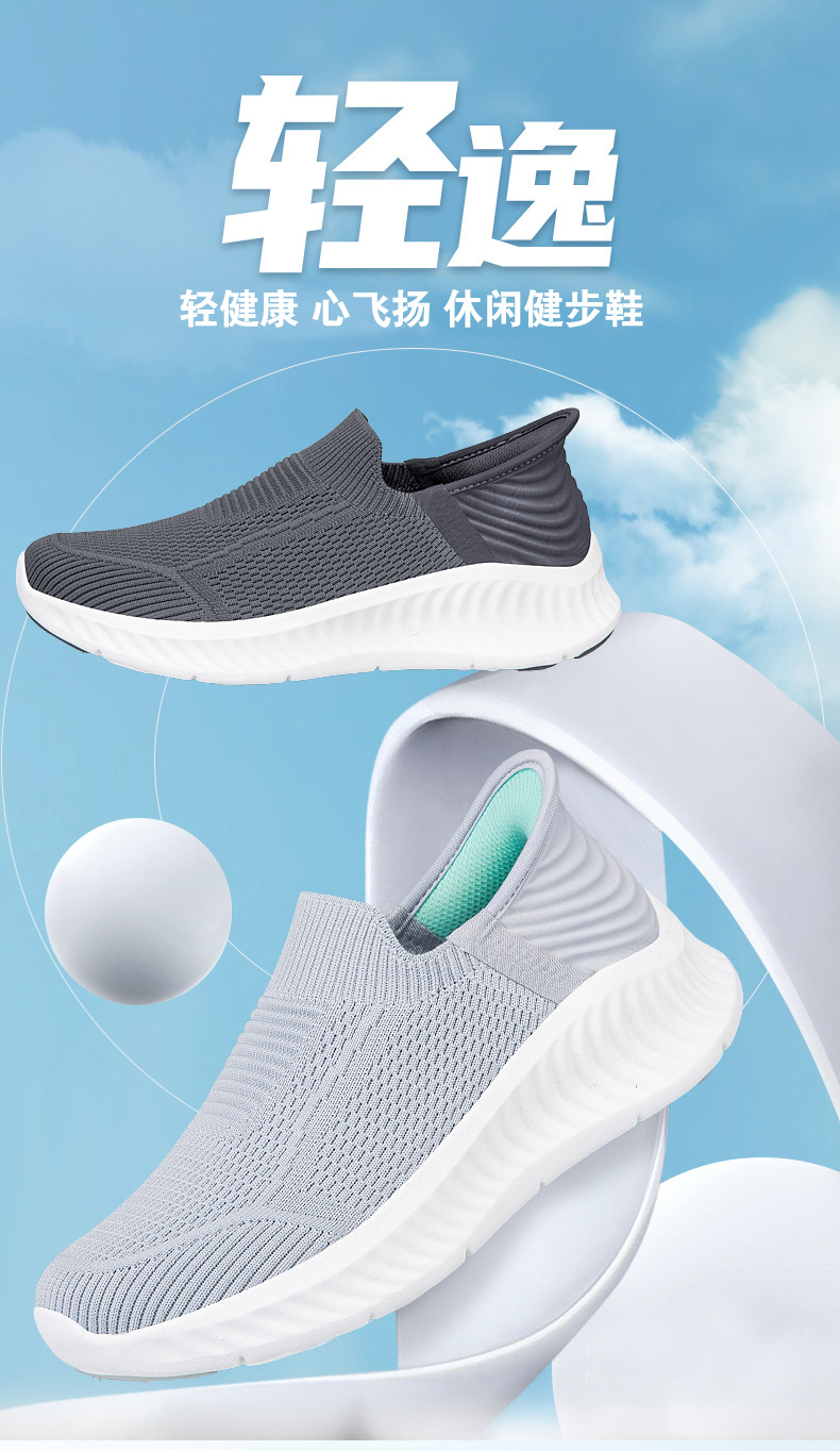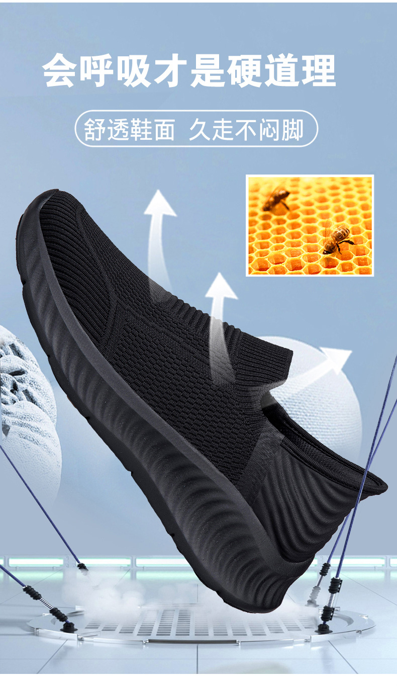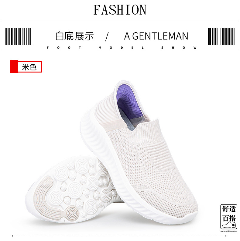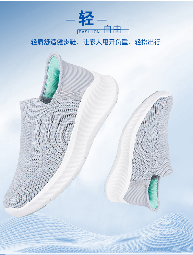 Туфли без шнуровки для пожилых людей, весенние дышащие прогулочные туфли с вязаной вязкой, нескользящая обувь на мягкой подошве для пап среднего и пожилого возраста, старая пекинская тканевая обувь для женщин.