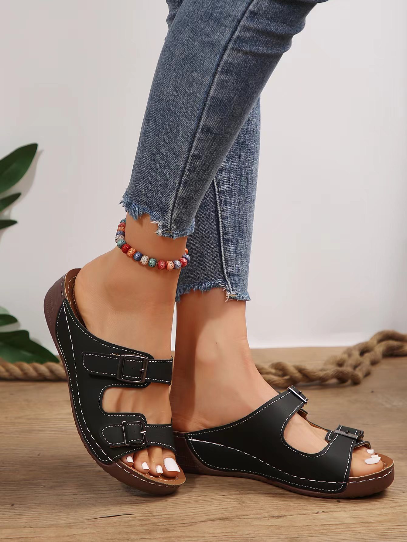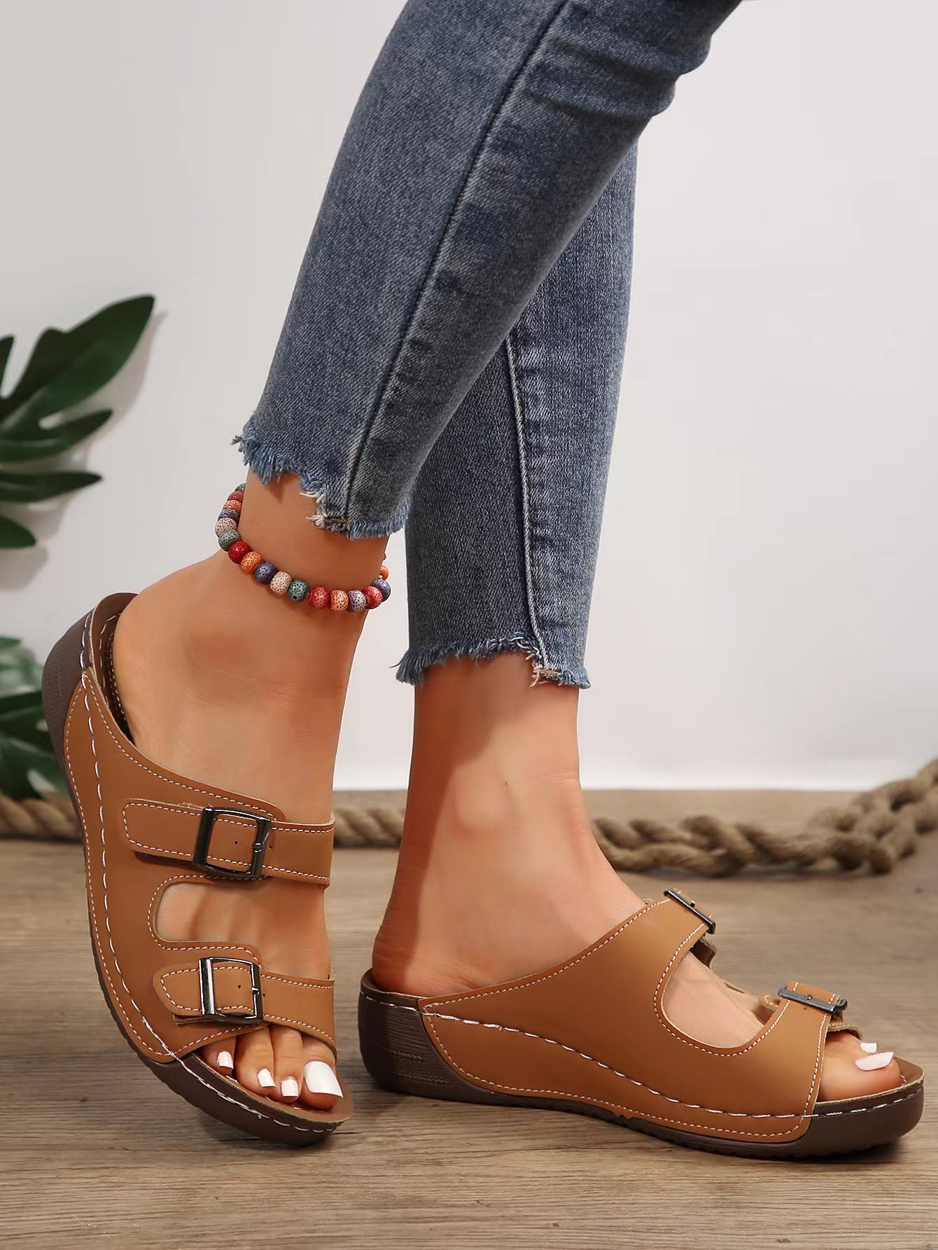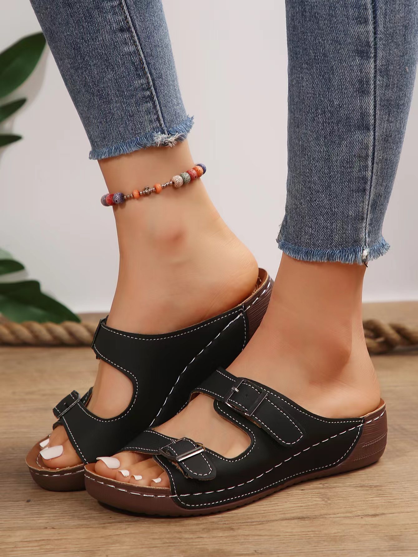 2025 новых женских тапочек на толстой подошве, большие размеры, повседневные тапочки на толстой подошве с одной ремешком, летняя пляжная обувь