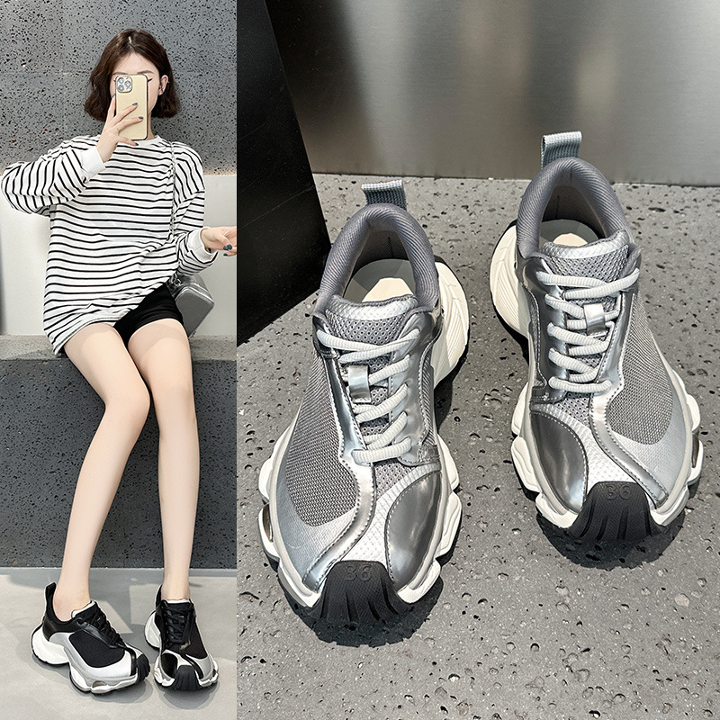 Новые женские кроссовки 2025 года в стиле ретро, на толстой подошве, модные, спортивные, повседневные, дышащие, весенние, в стиле «папиных» кроссовок