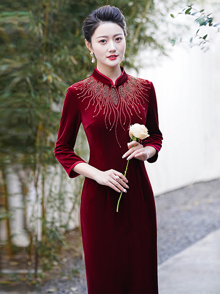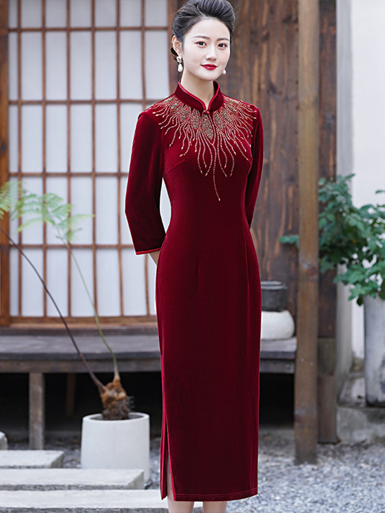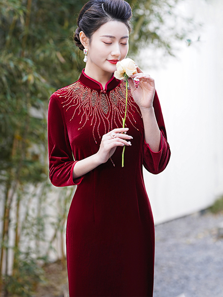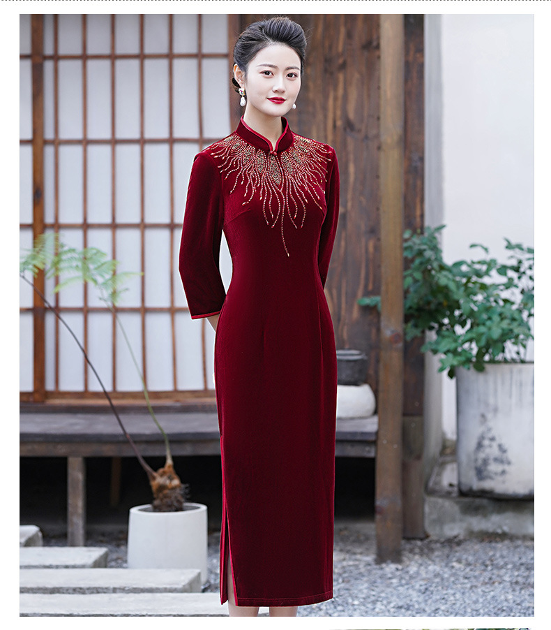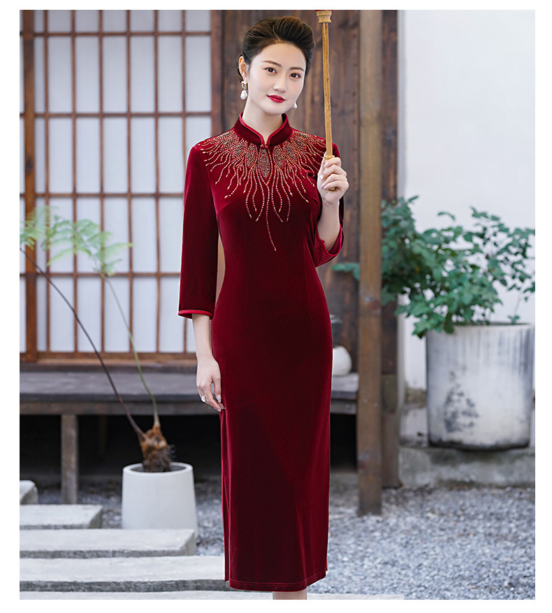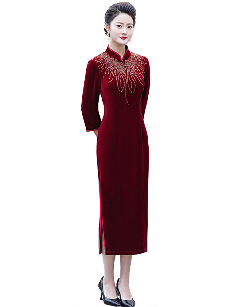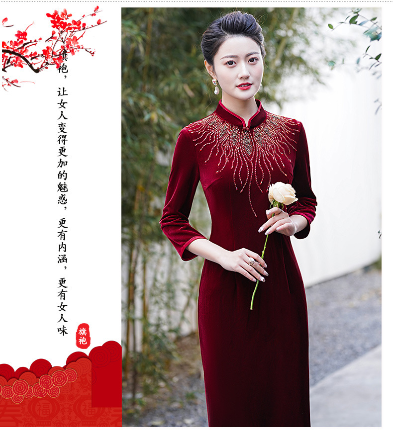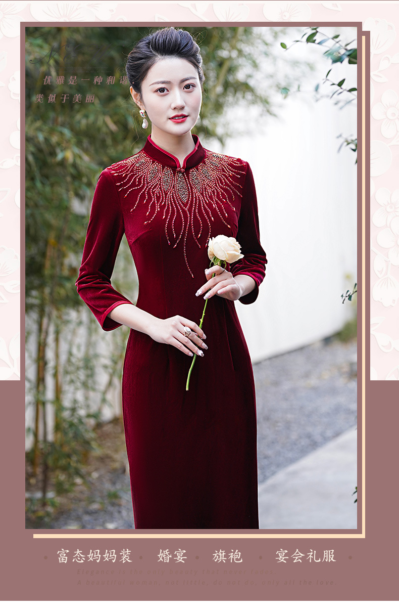 Осенне-зимний воротник пипа для среднего и пожилого возраста, чонсам, золотой бархат, бархат средней длины, золотой норковый бархат, воротник-стойка, высококачественная доставка для среднего возраста