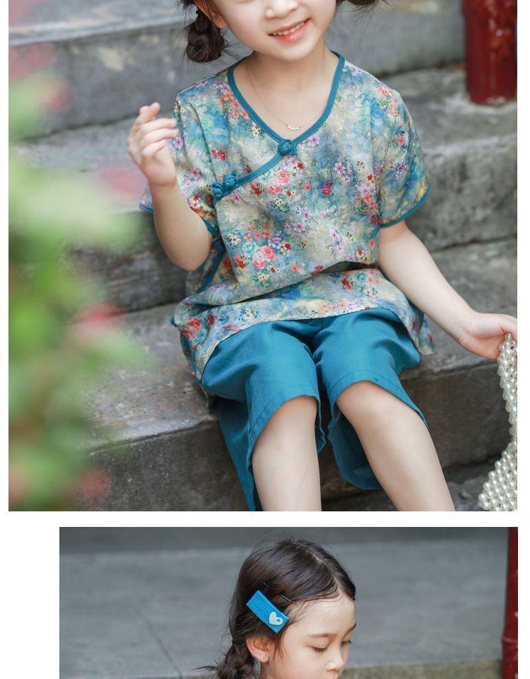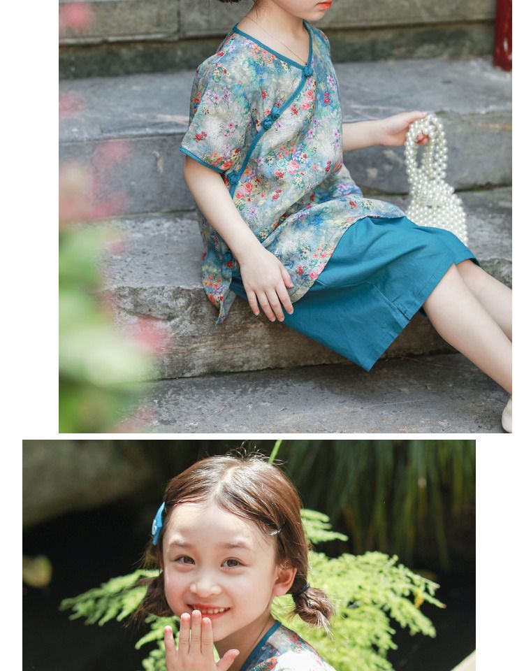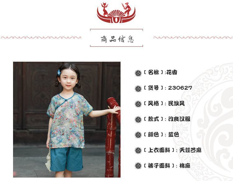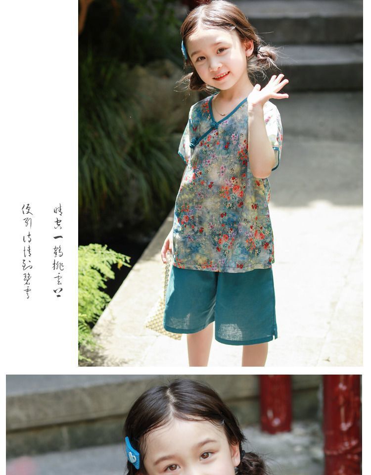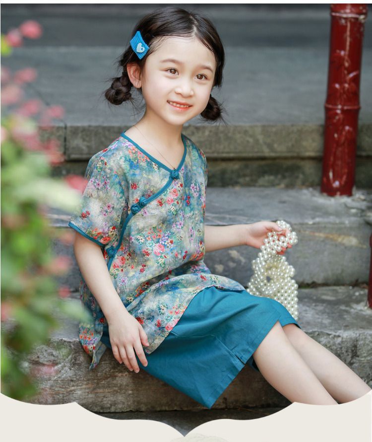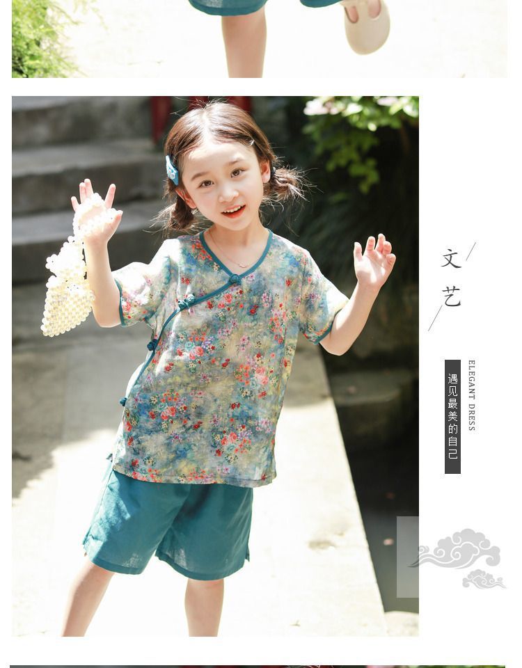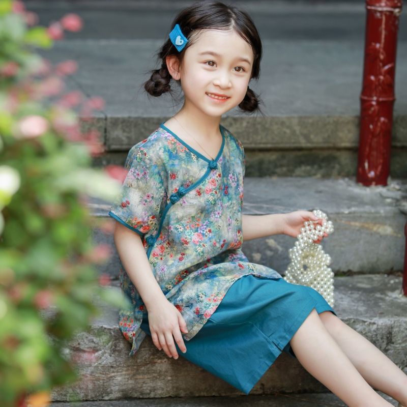 Комплект ханьфу для девочек для маленьких девочек, летний легкий костюм Тан с короткими рукавами в древнем стиле для девочек, улучшенный детский комплект из двух предметов с цветочным принтом.