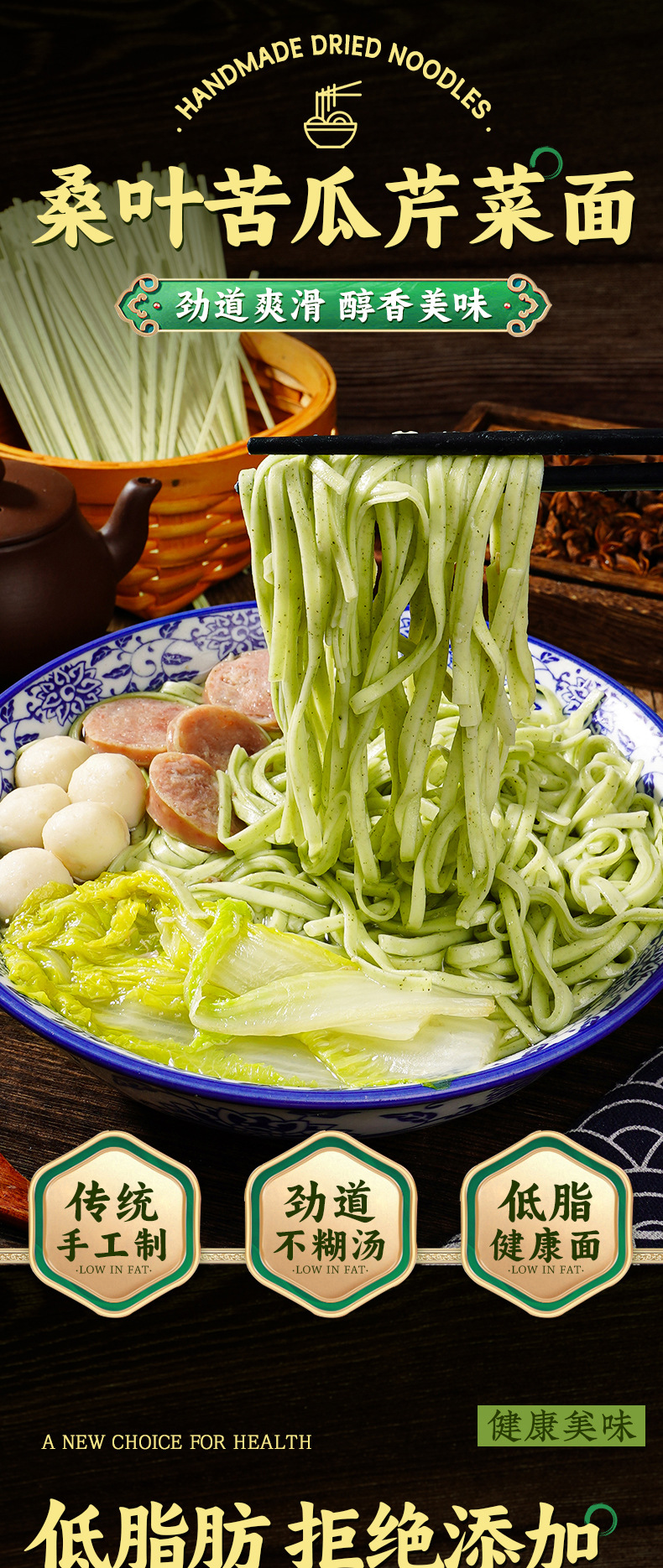 Листья шелковицы, горькая тыква, сельдерей, лапша, лапша, лапша, лапша для завтрака, лапша быстрого приготовления