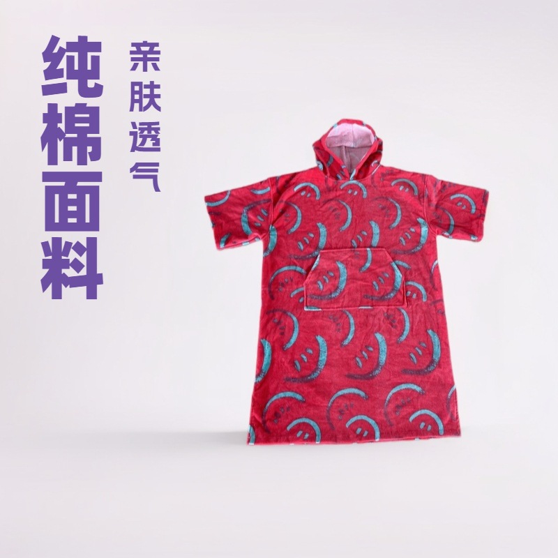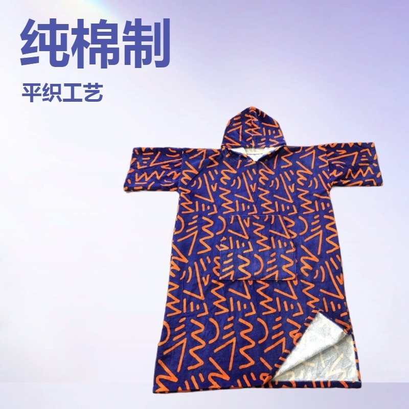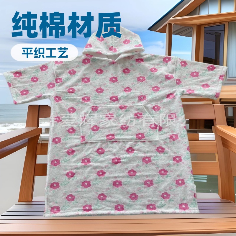 Готовый к отправке хлопковый махровый пляжный халат с капюшоном и короткими рукавами, хлопковый махровый халат с принтом