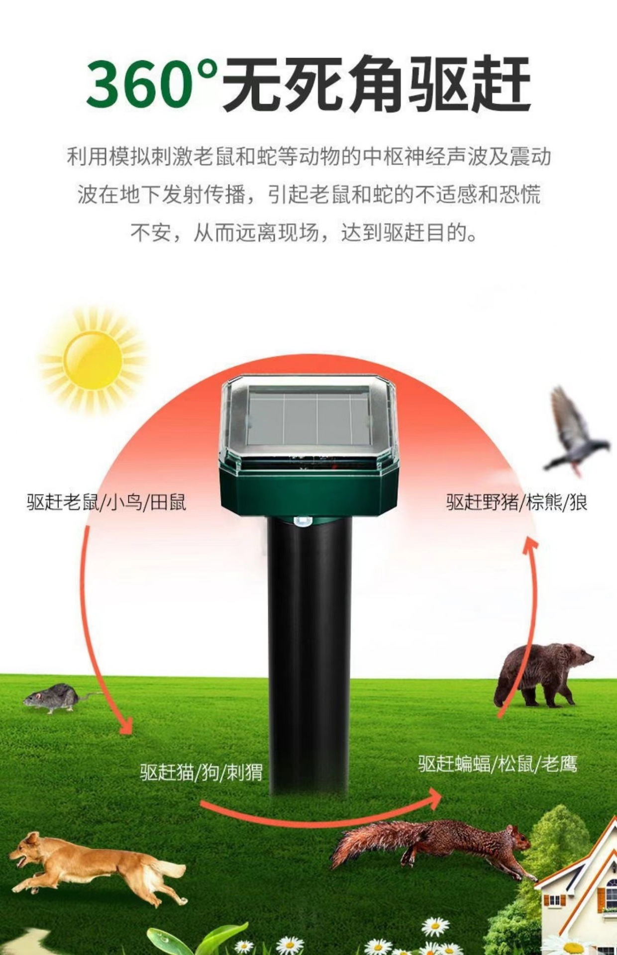[1 упаковка] Солнечный ультразвуковой отпугиватель; [1 упаковка] Круглый ультразвуковой отпугиватель на солнечной энергии