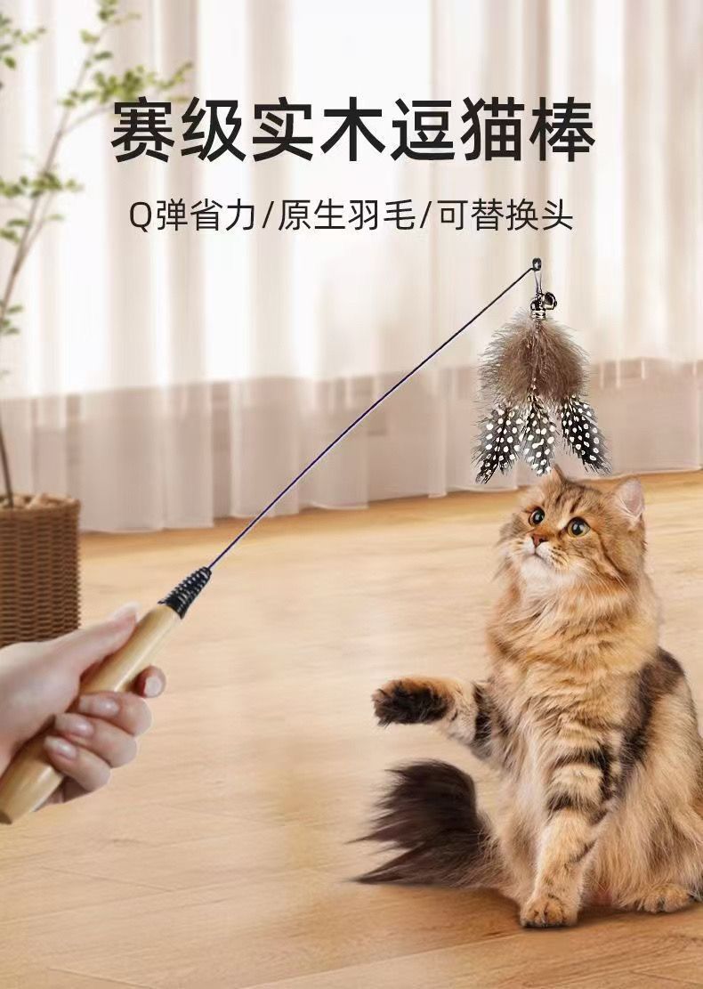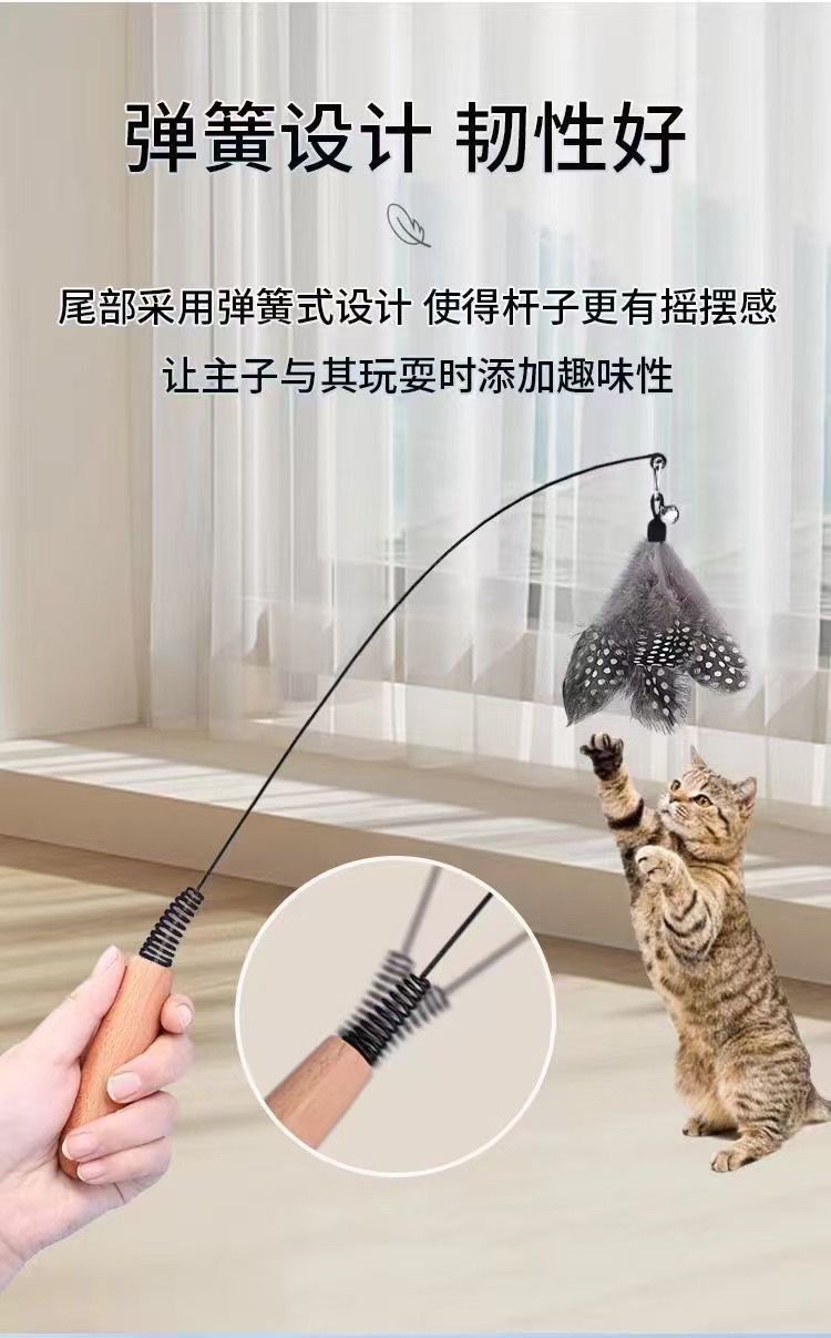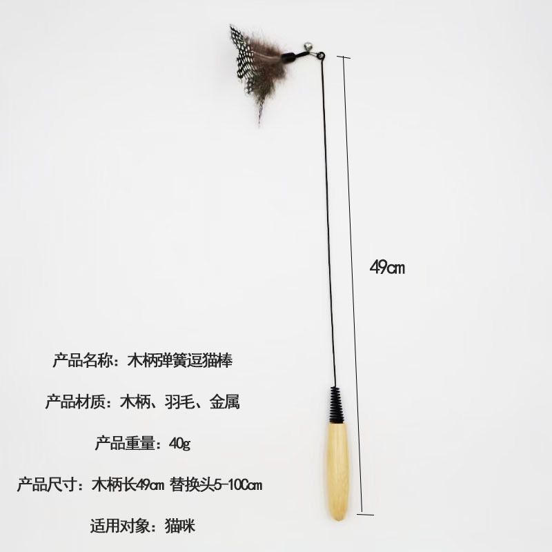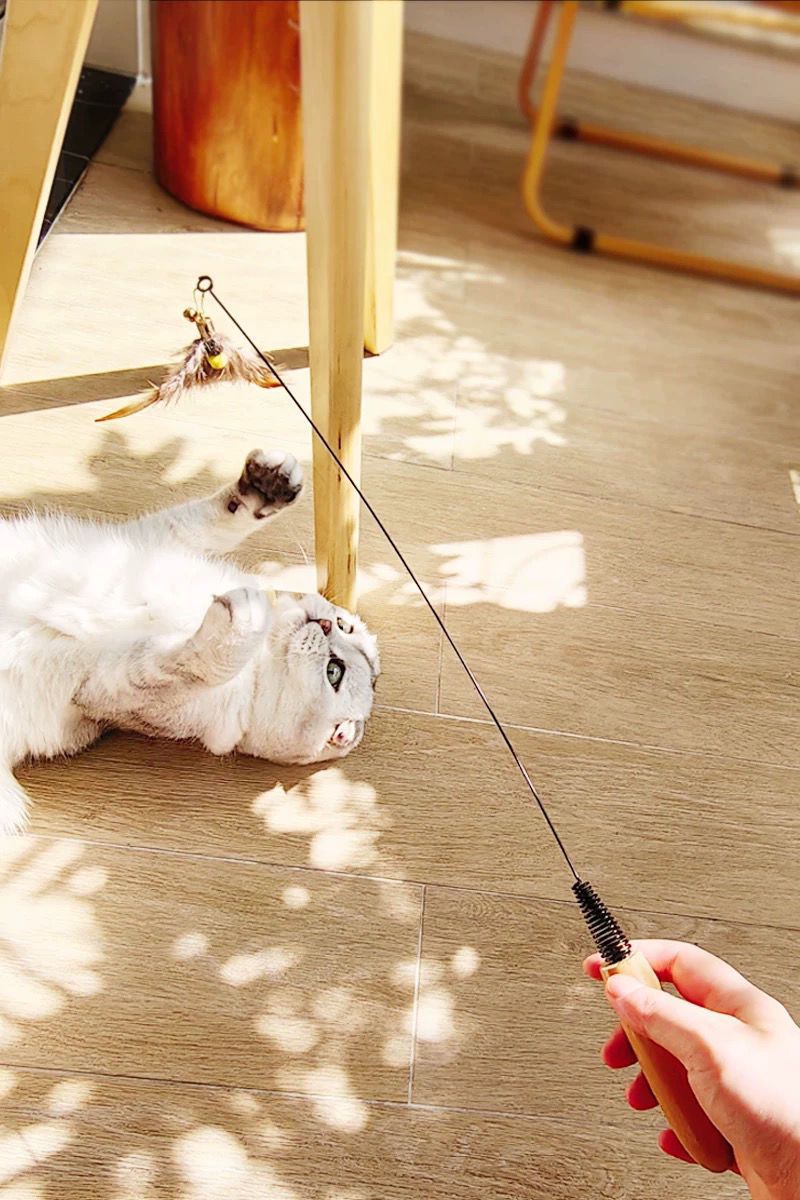 Деревянная ручка CFA с пружиной, популярная палочка для дразнения кошек, интерактивная игрушка для снятия скуки, сменная игрушка для кошек с перьями