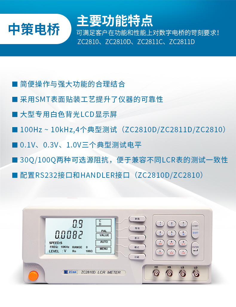 ZCtek Zhongce высокоточный цифровой мостовой тестер LCR с частотой 100~10 кГц ZC2810D измерительный прибор