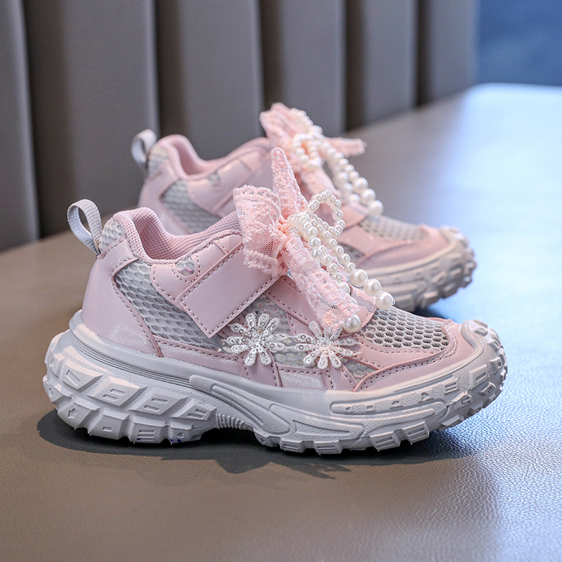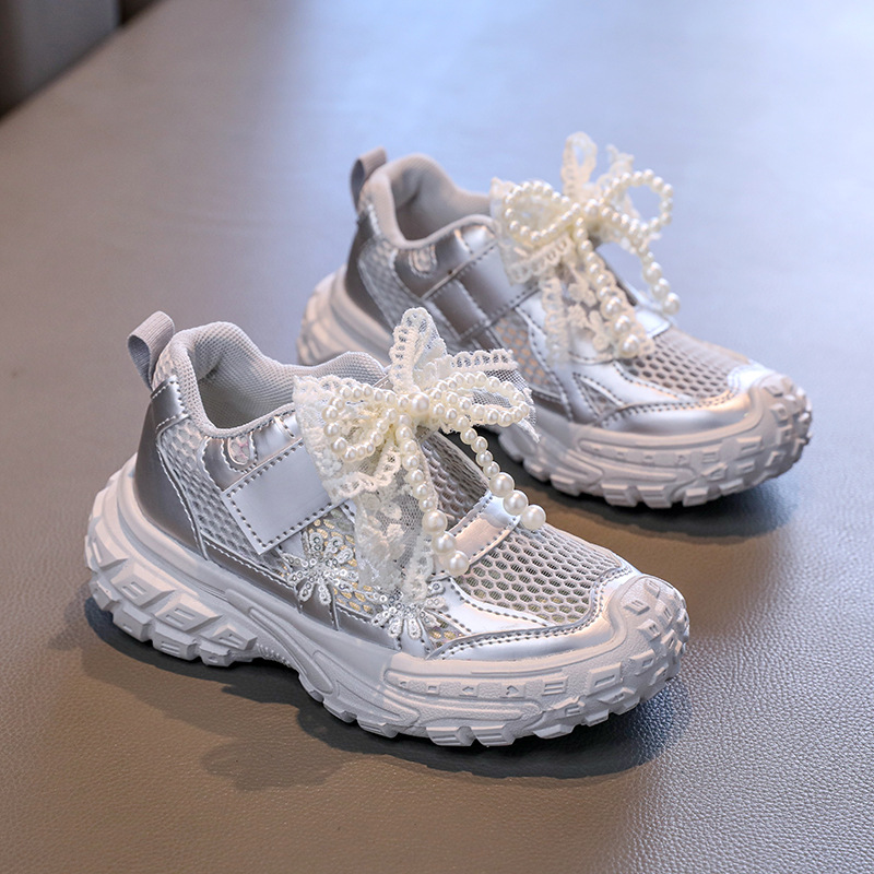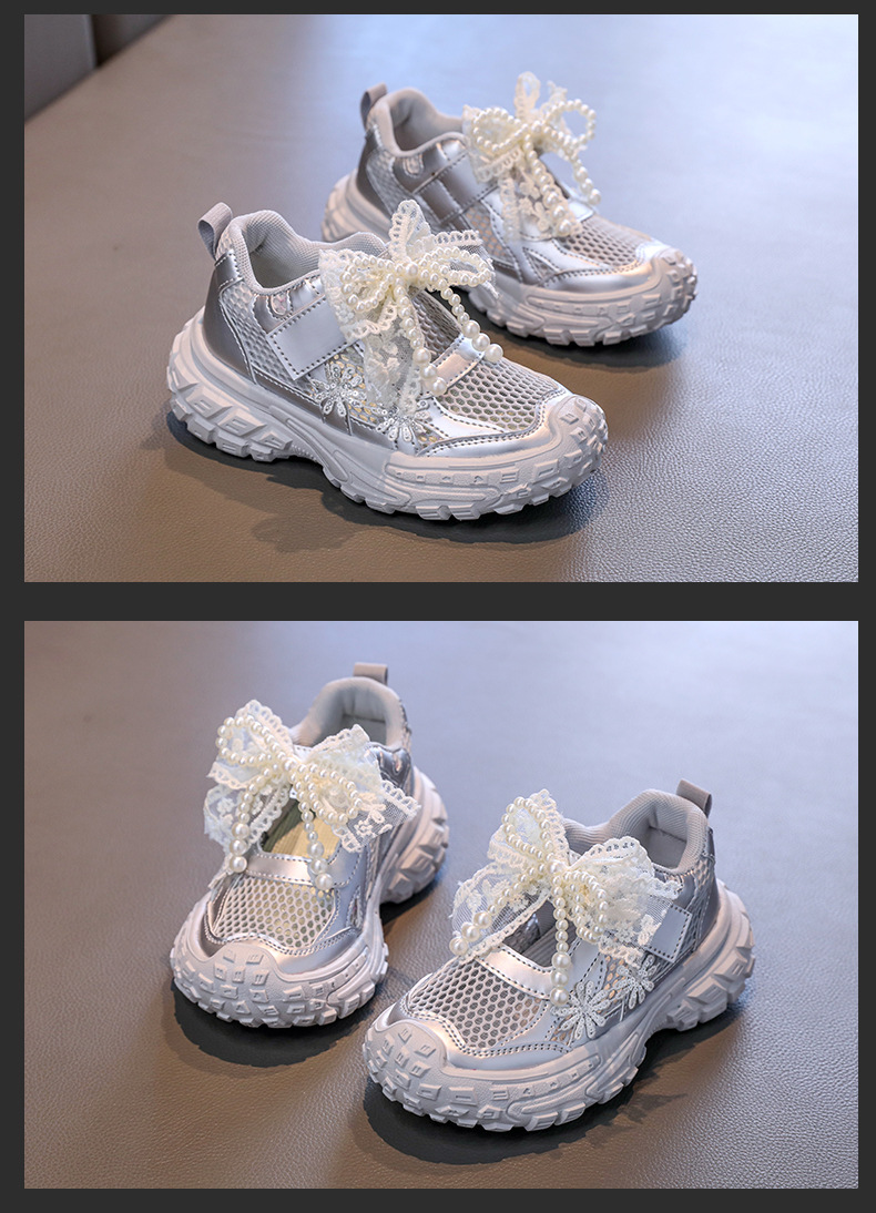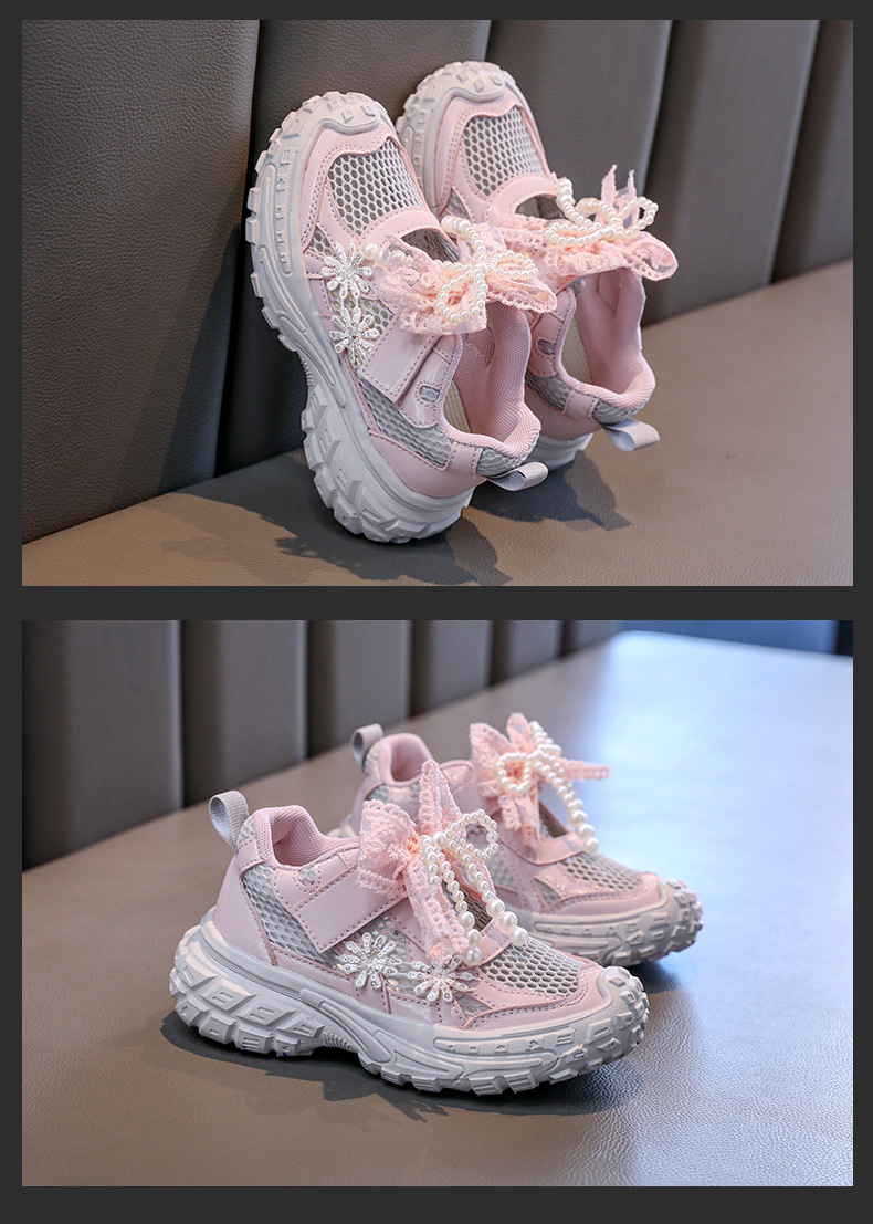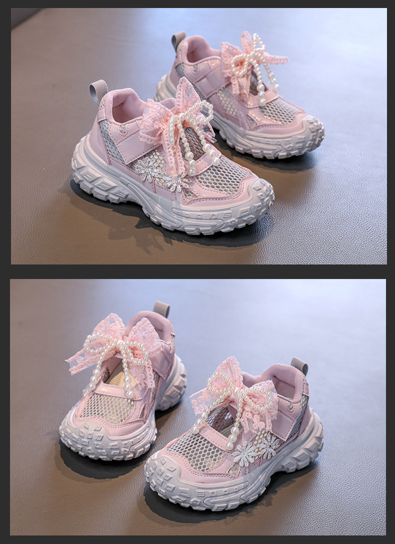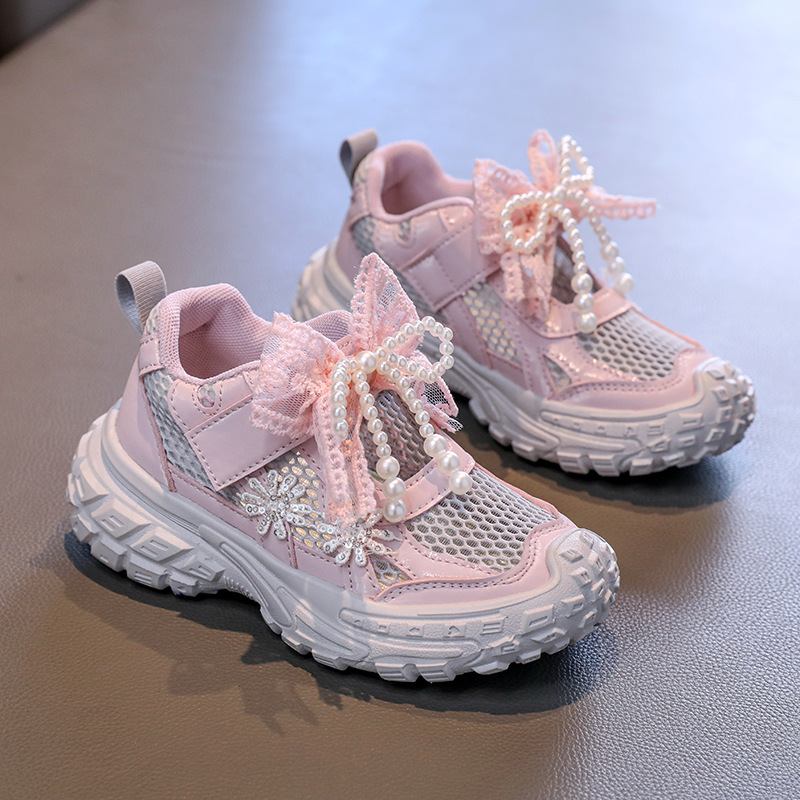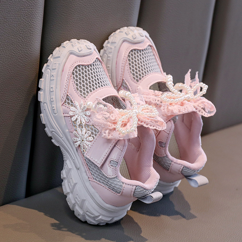Детские спортивные сандалии для девочек весна/лето 2025, новые, сетчатые, дышащие, с бантиком, «папины туфли», ажурные, трендовые туфли принцессы.