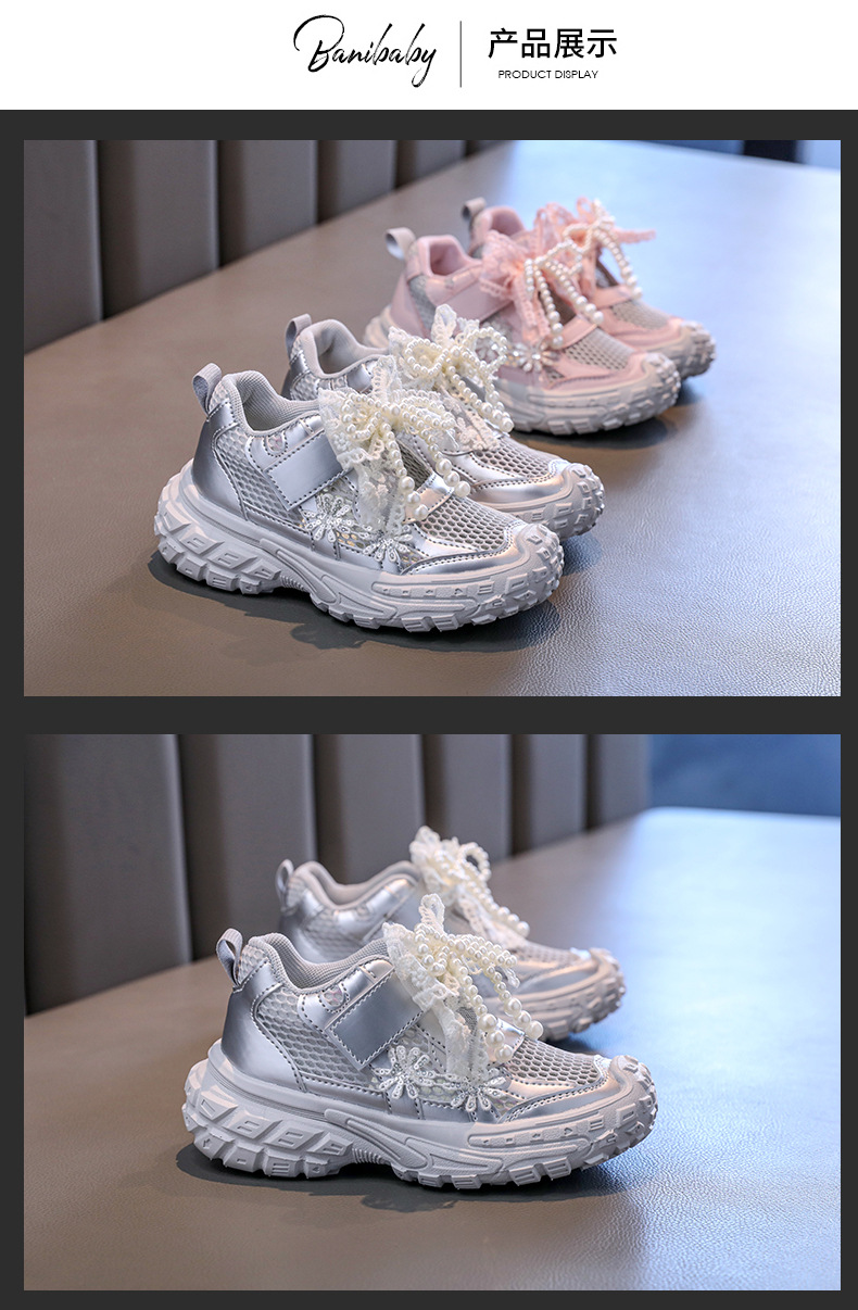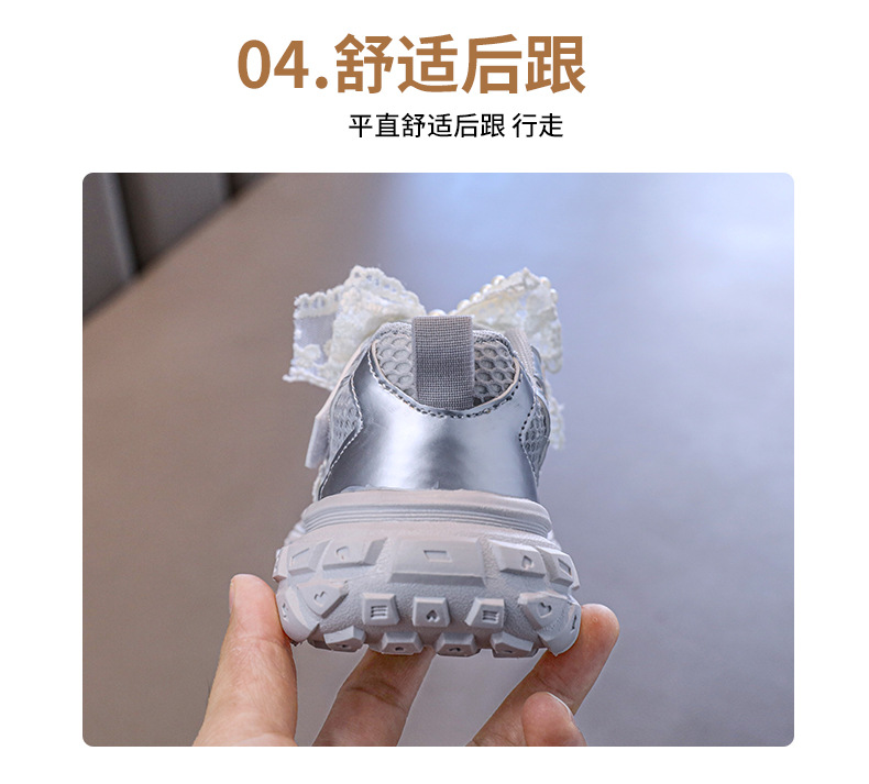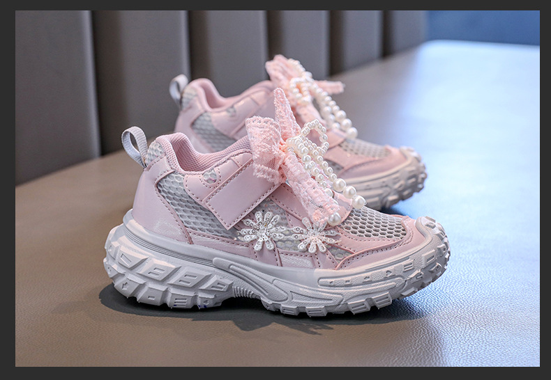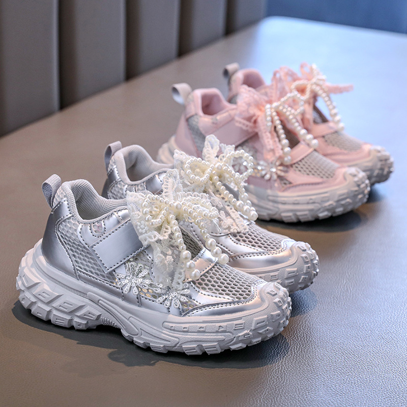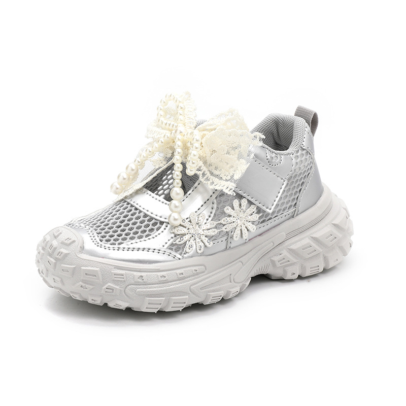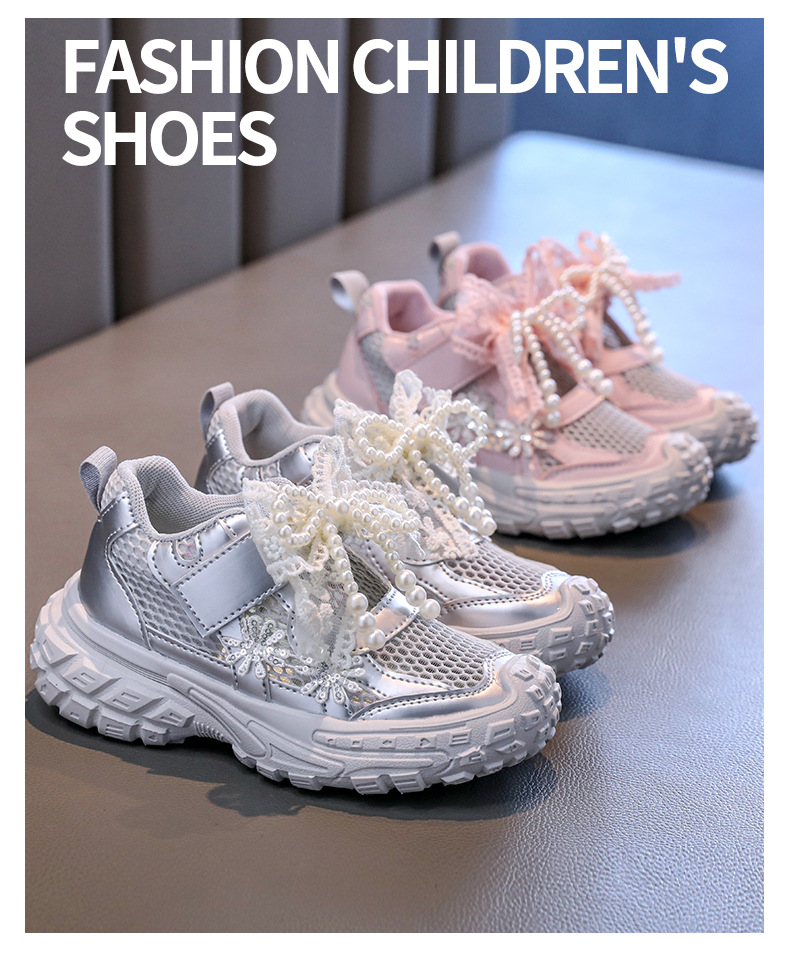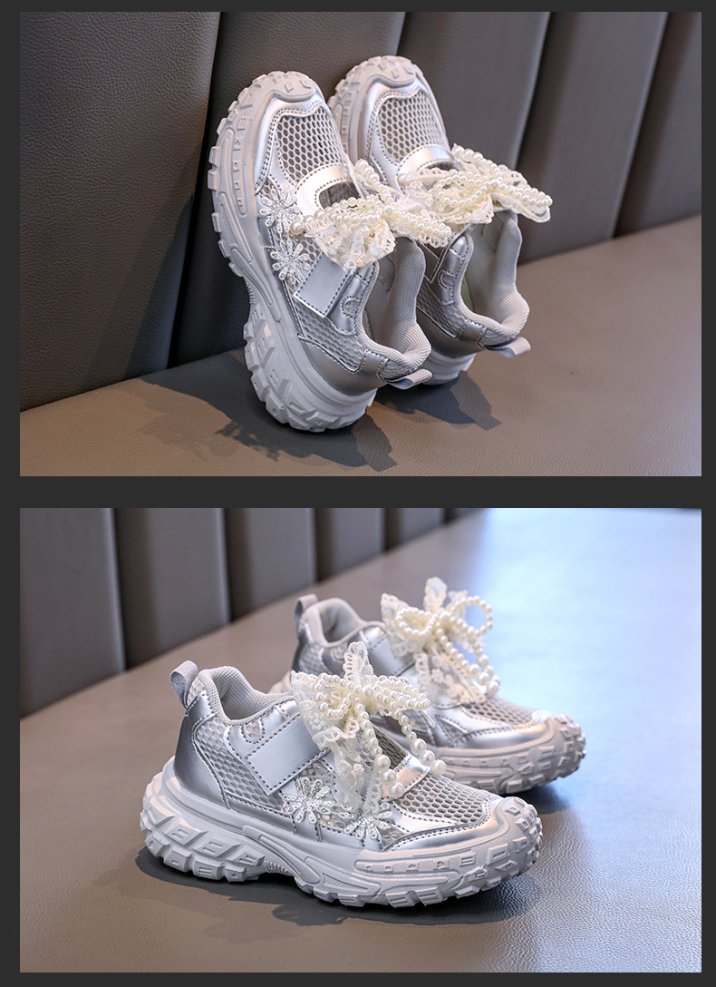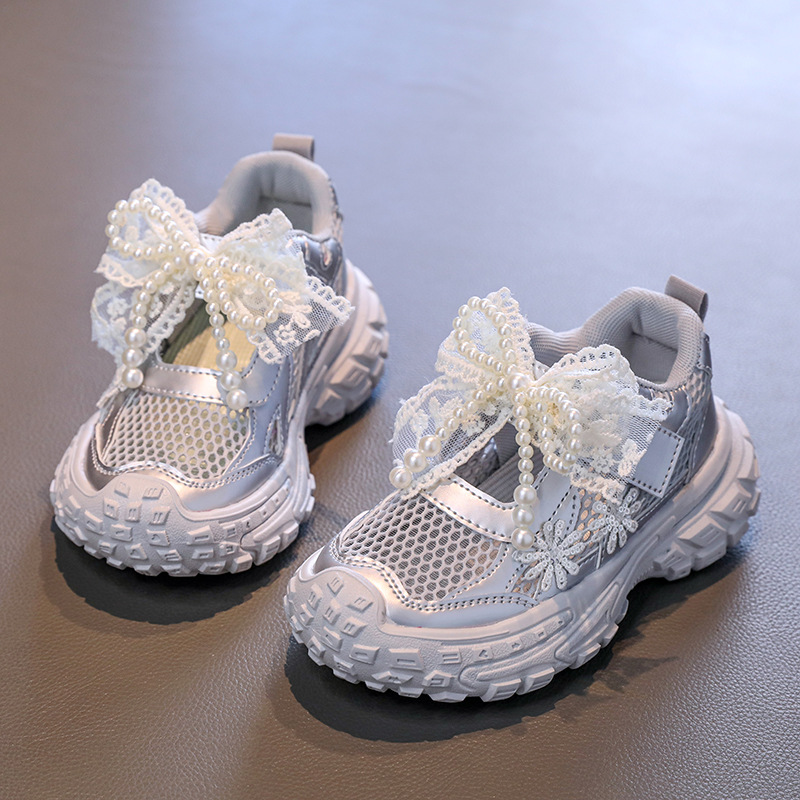 Детские спортивные сандалии для девочек весна/лето 2025, новые, сетчатые, дышащие, с бантиком, «папины туфли», ажурные, трендовые туфли принцессы.