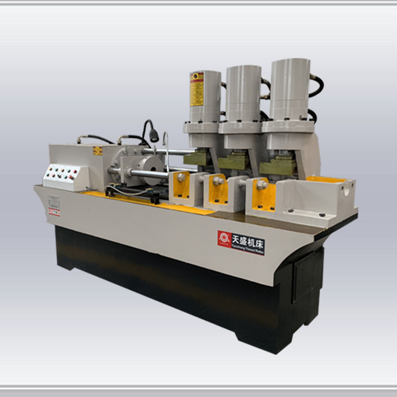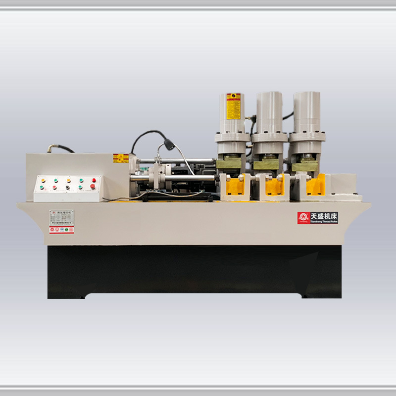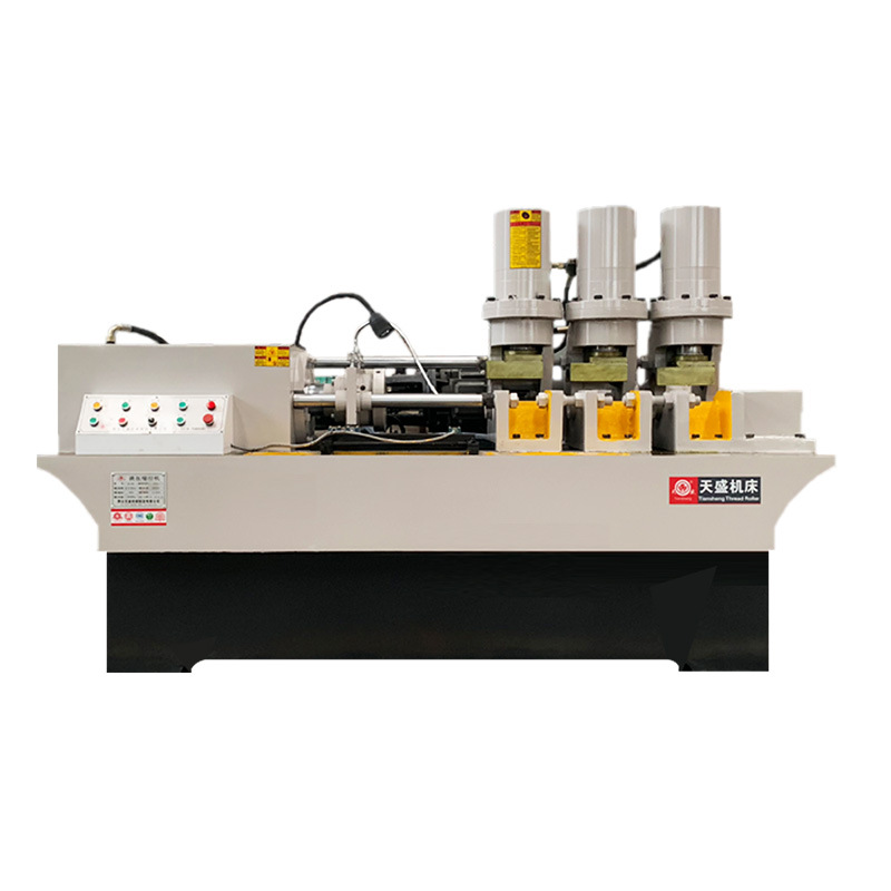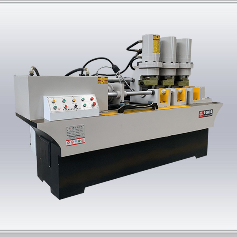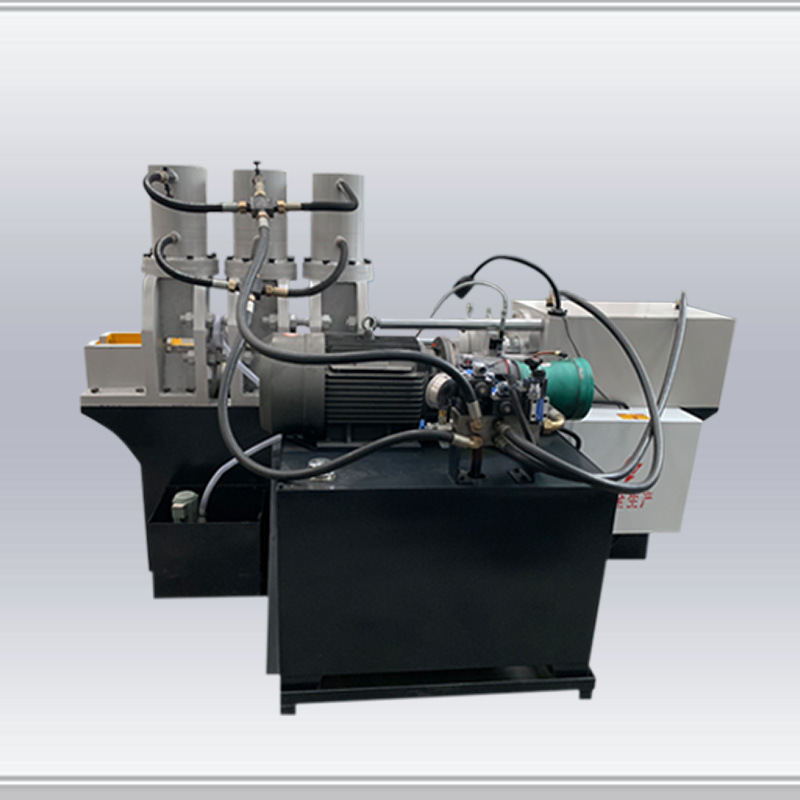 缩径机属无切削加工设备,具有生产效率高、工艺简单、易于操作、节约原材料、质量稳定等特点。它是利用液压技术将圆钢、螺纹钢等需缩径部分送入专用磨具内经冷缩压成型,缩压部分钢材密度提高,从而提高材料的抗压强度。而塑性、冲击韧性不减,使丝扣部分和杆体部分强度一致,解决了因车床剥皮而减小抗压力和冲韧性的弊端。可做大直径的圆钢,地脚螺丝,双头建筑螺丝,高速桥梁螺丝,生产矿山锚杆,地脚螺丝,长杆螺丝的理想设备。本设备能将材质一次压缩成滚丝直径,且增强了材质的密度,长度,提高了锚杆的抗拉强度。