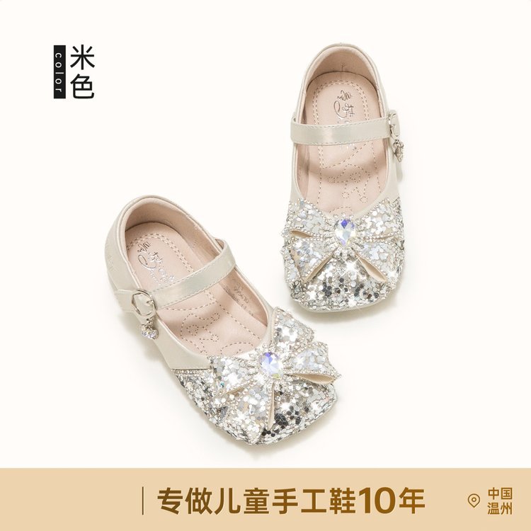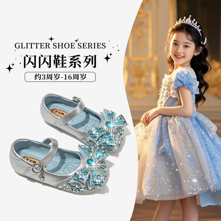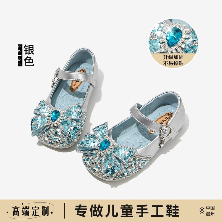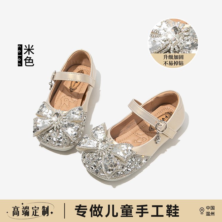 Кожаные туфли для девочек Принцесса Аиша обувь 2025 весна лето новые стразы детские одиночные туфли для девочек хрустальные кожаные туфли
