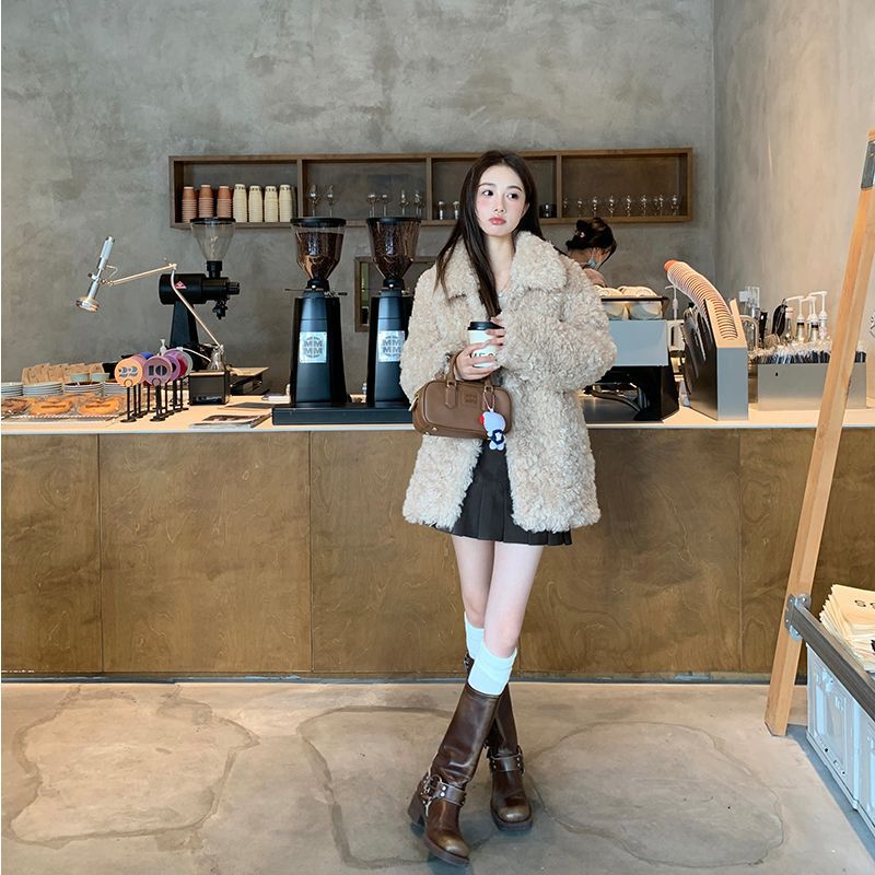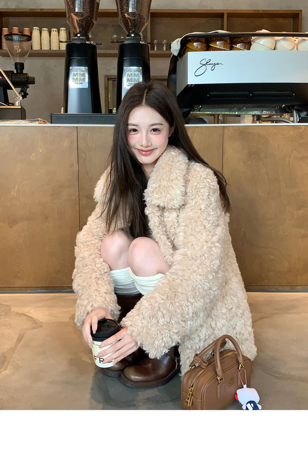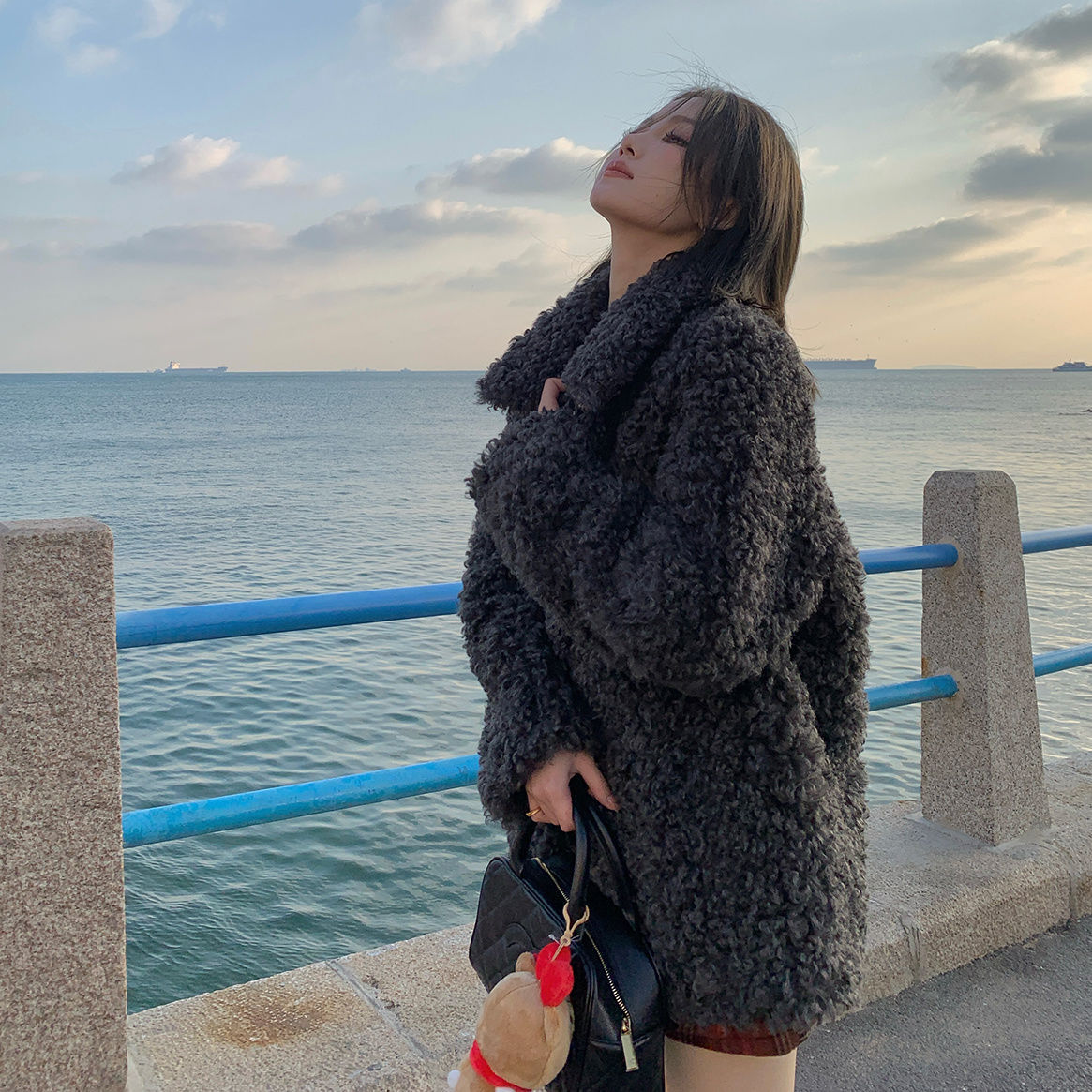 Женская верхняя одежда из искусственного кашемира средней длины, зимняя свободная утолщенная верхняя одежда с лацканами в ленивом стиле, верхняя одежда из искусственного кашемира