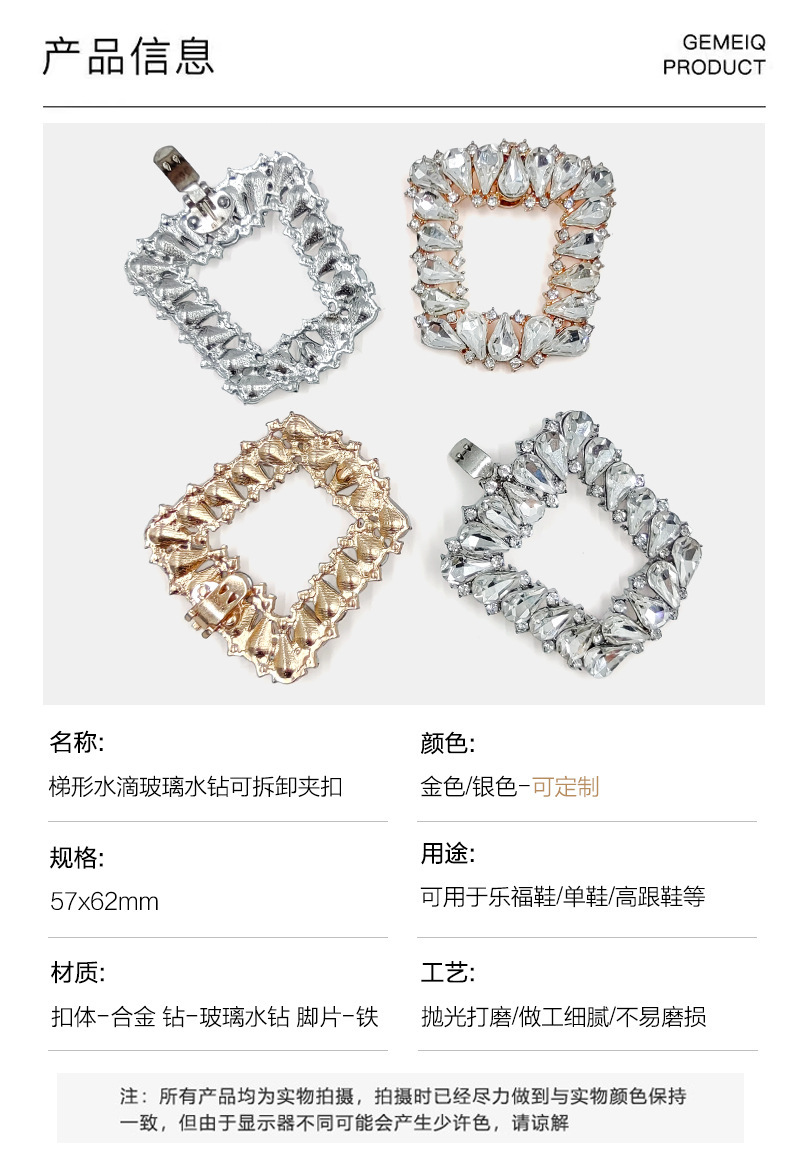 B1043/золотой трапециевидный стеклянный страз со съемным зажимом/шт.; B1044/серебряный трапециевидный стеклянный страз со съемным зажимом/шт.