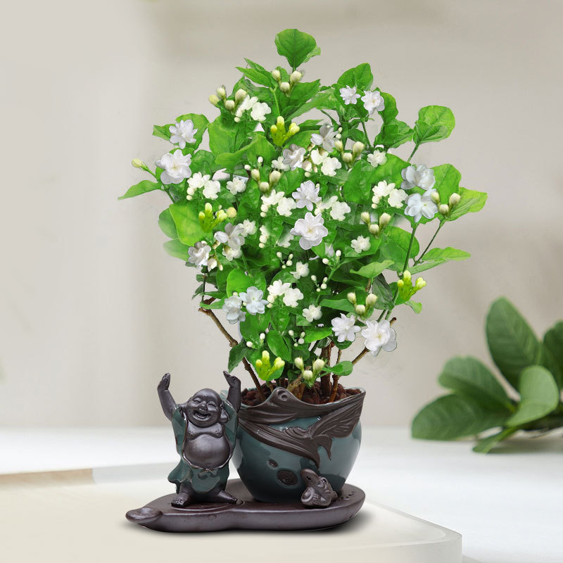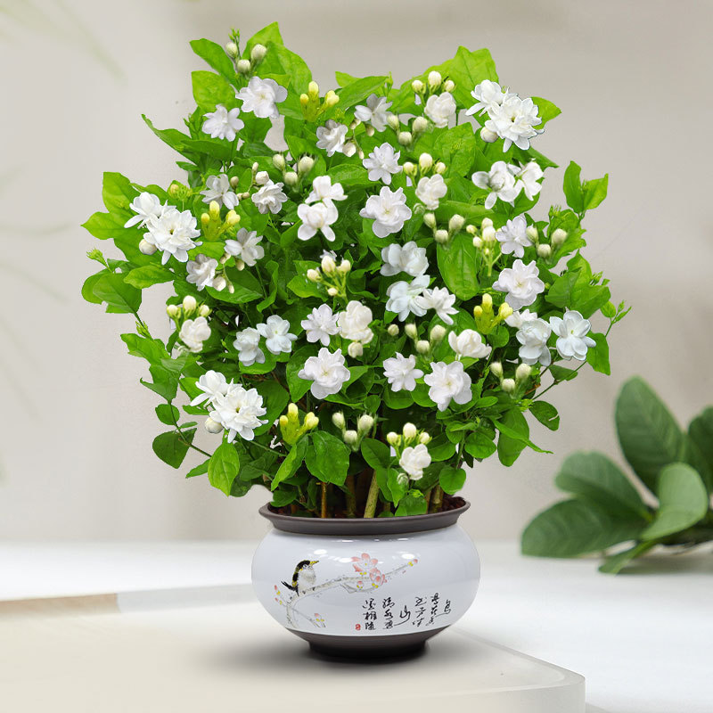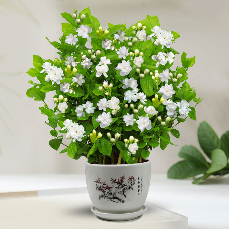 Рассада жасмина в горшках с бутонами, девятимильный ароматный старый сучок, цветок, отпугивающий комаров, ароматный в помещении, цветет в любое время года и его легко содержать.