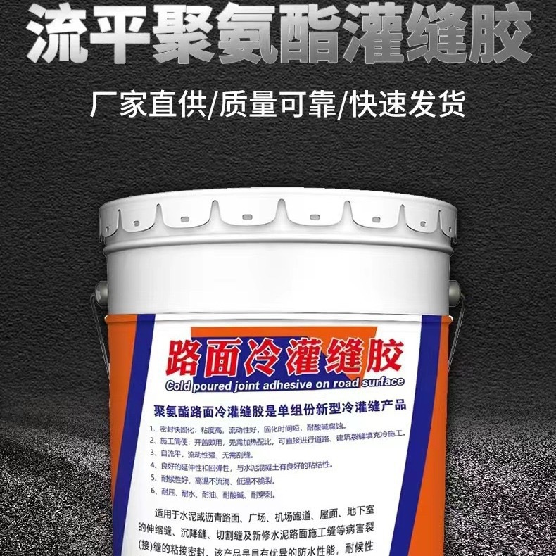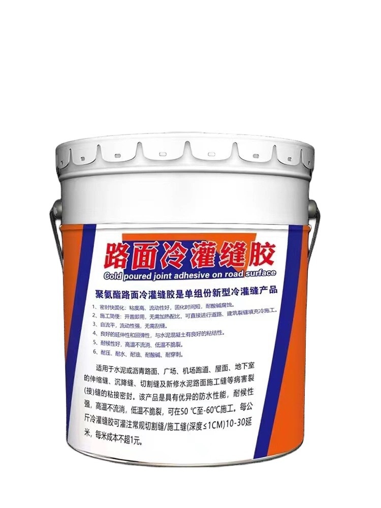 Однокомпонентный полиуретановый клей для холодной затирки трещин в дорожном покрытии без нагревания. Откройте крышку и налейте асфальтовый клей для холодной затирки.