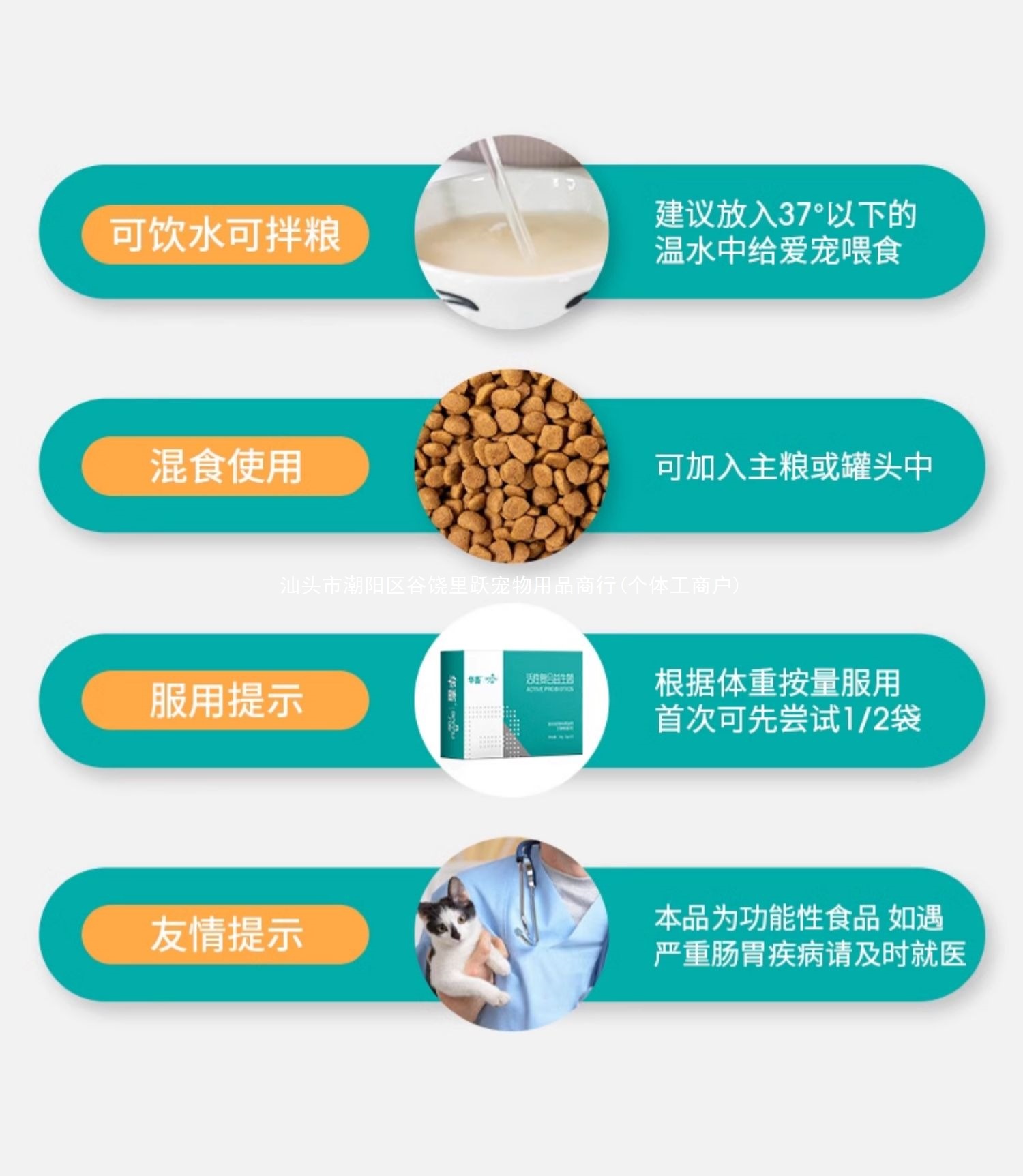 10 шт./кор. составных пробиотиков + 2 шт. для пробных питомцев; Кондиционирующий пакет для контроля диареи 2 г/пробиотики + Montmorillonite Leap Pet; Кондиционер против тошноты 3 г/пробиотики + таблетки циметидина для домашних животных; Комплекс кондиционирования и витаминных добавок 4 г/пробиотики + мультивитамины для домашних животных; Пакет для питания для удаления волос 5 г/пробиотики + пищевые таблетки для удаления волос Leap Pet; Пакет пищевого кондиционирования 6 г/пробиотики + глубоководное рыбий жир для домашних животных; 7 г пакет иммунного кондиционирования/пробиотики + порошок полисахаридов астрагала для домашних животных; Подарочный пакет комплексной пищевой добавки Leap Pet, 8 г; 9 г Традиционная китайская медицина Кондиционирующий Leap Pet