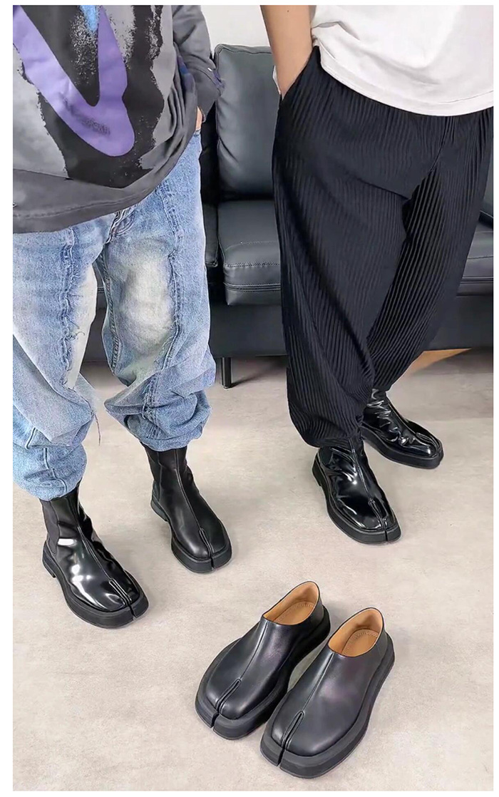 Туфли без шнуровки с раздельным носком в нише, мужские и женские туфли-подкова с низким берцем, модные туфли-дерби