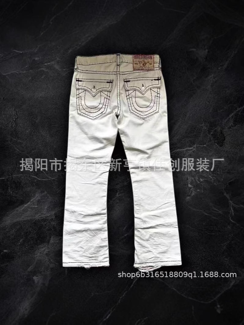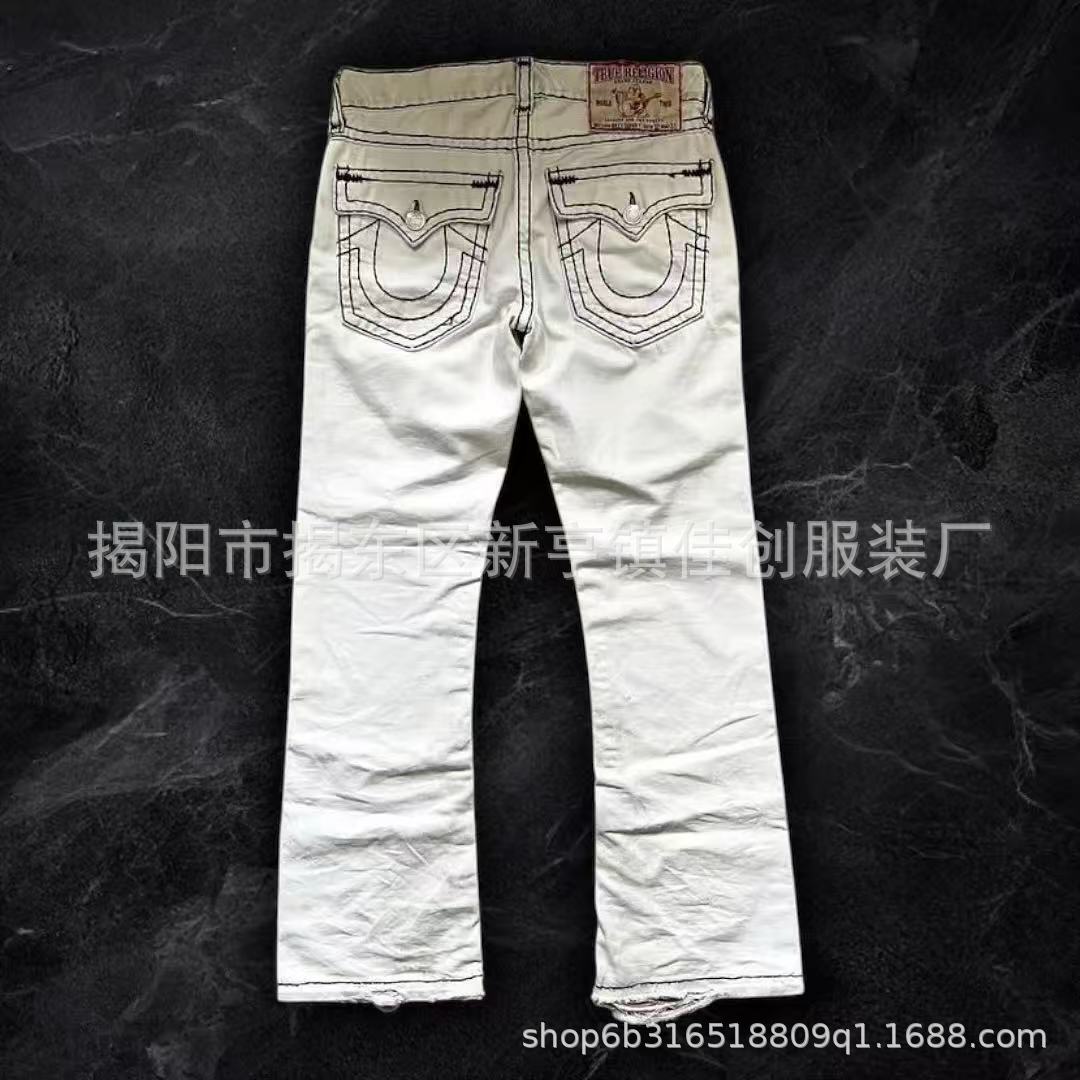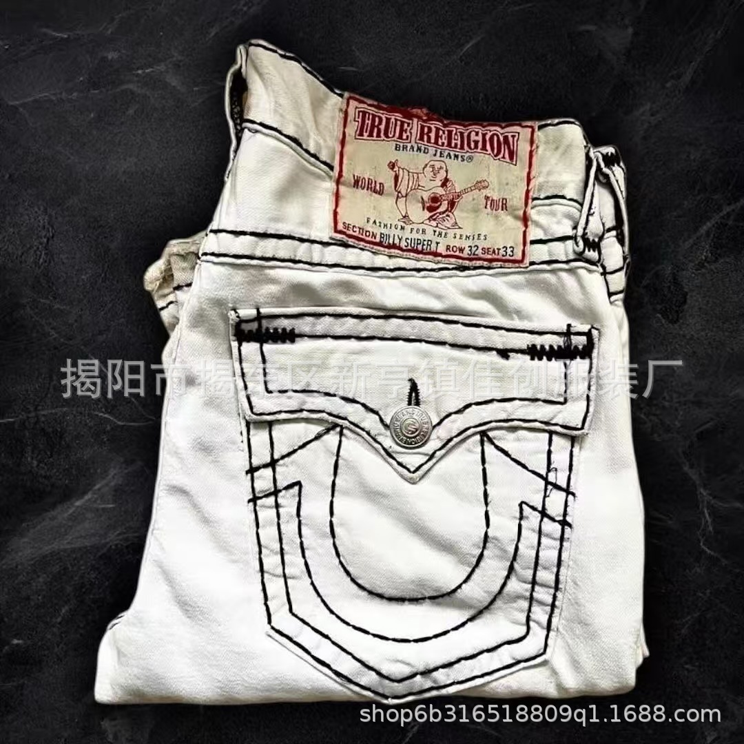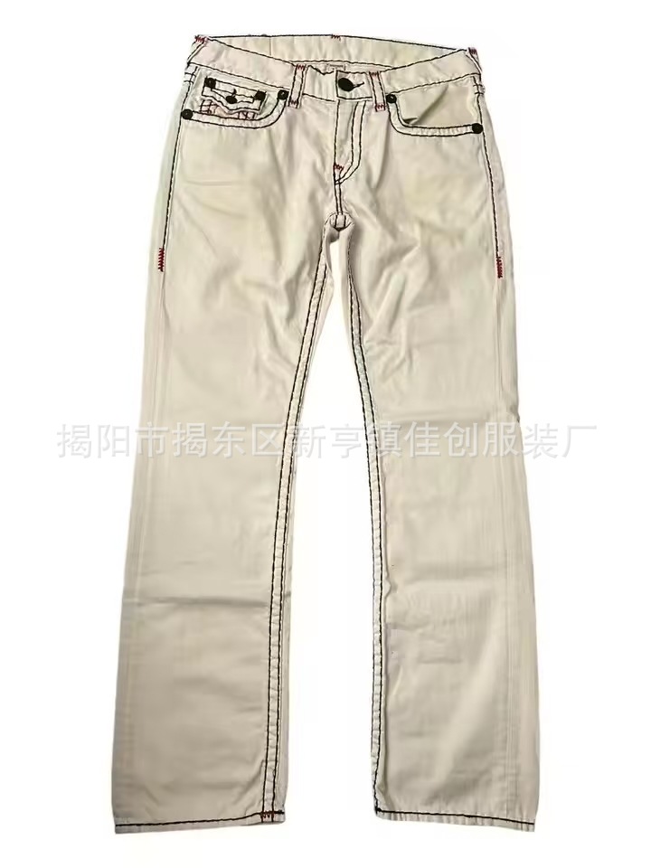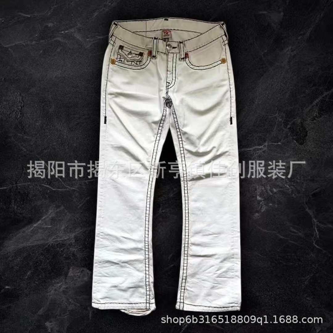 Трансграничная внешняя торговля, модные универсальные американские ретро весенне-осенние новые джинсы для мужчин и женщин, белые прямые брюки с толстой линией