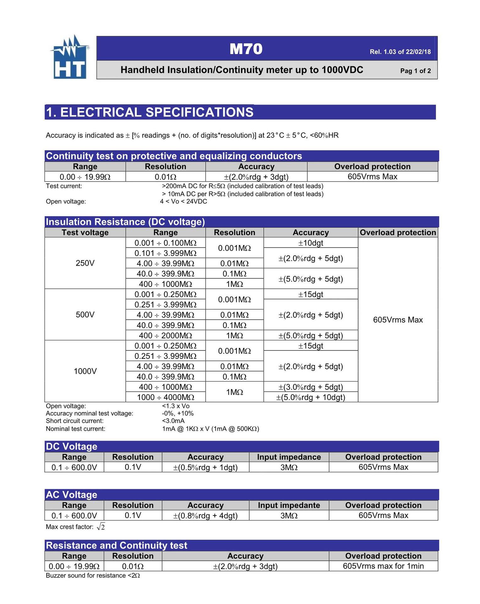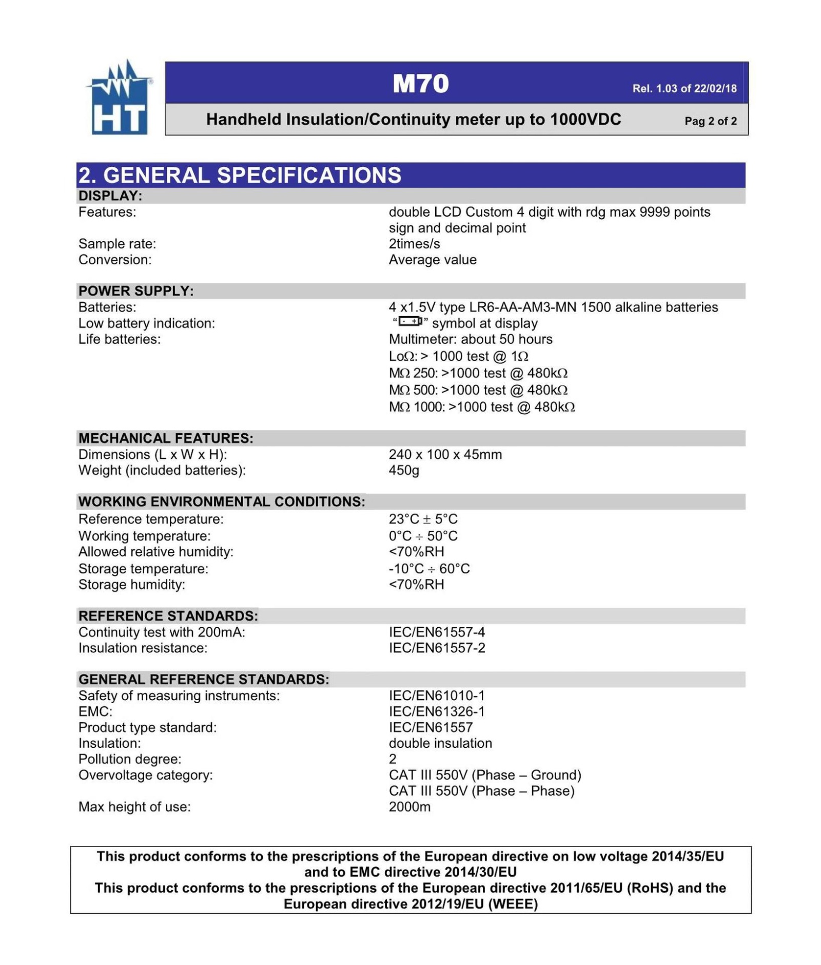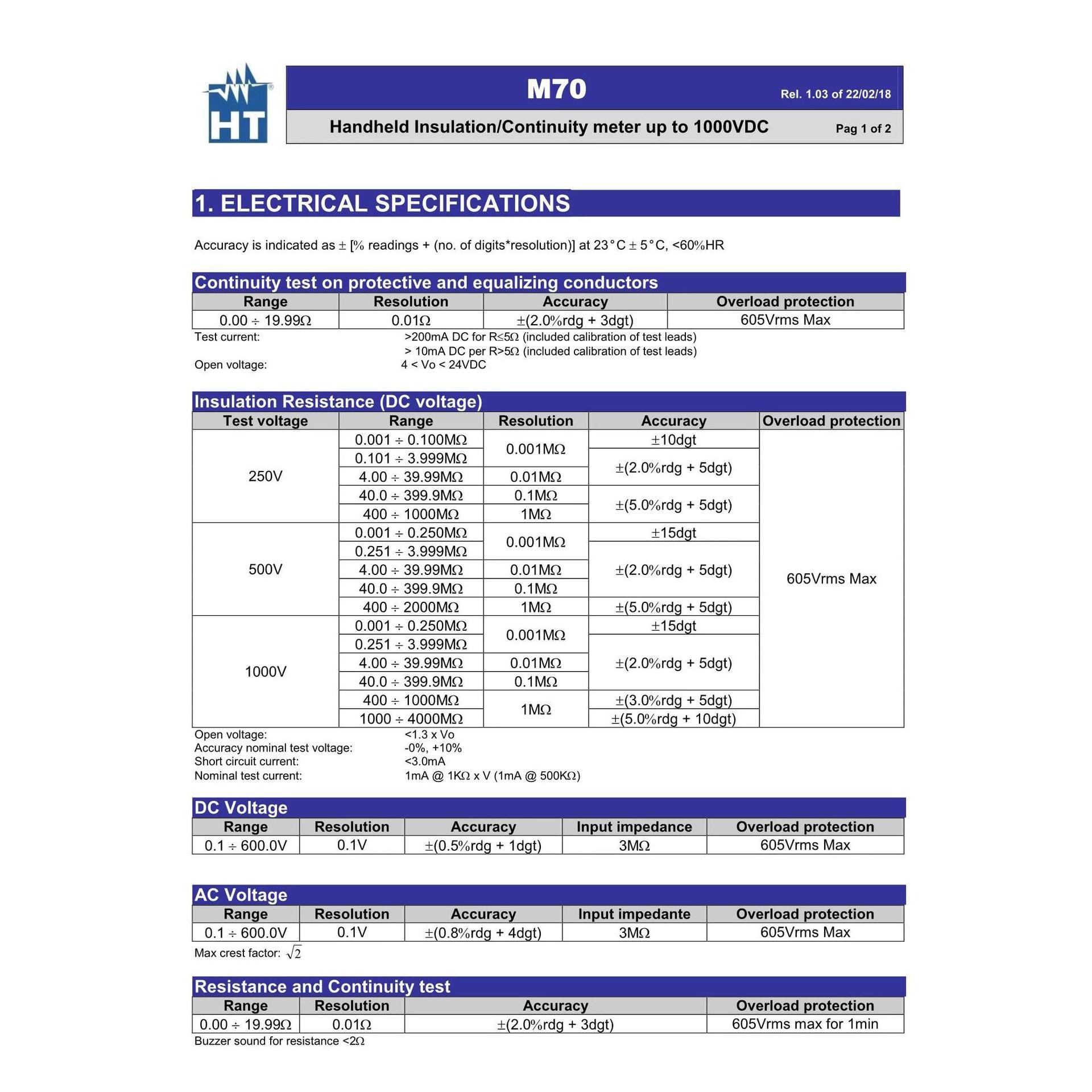 Италия HT Instruments M70 многофункциональный тестер с TRMS