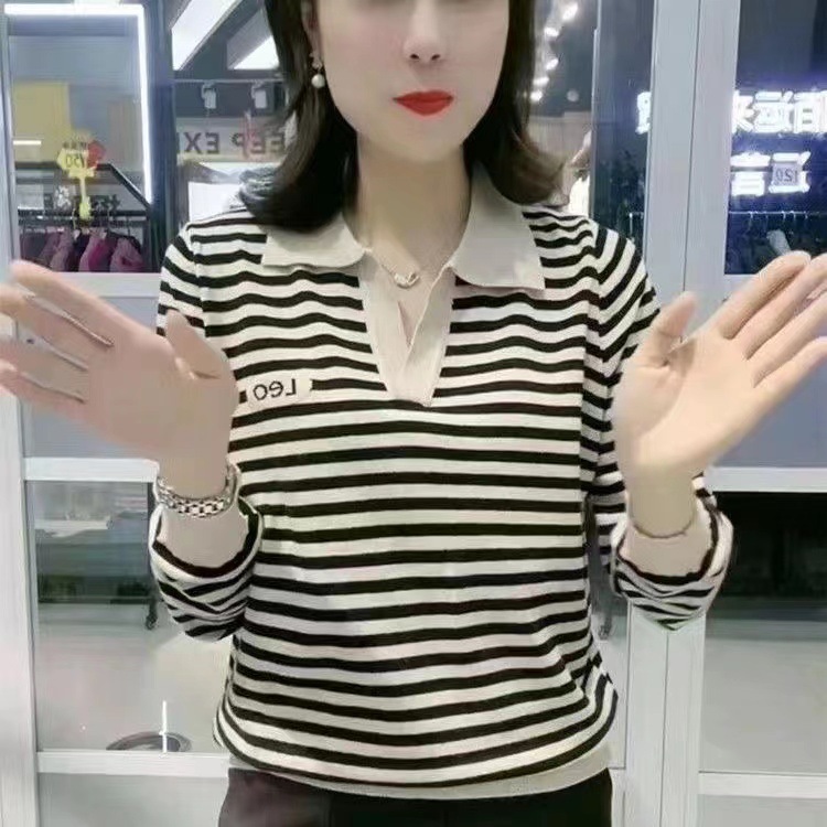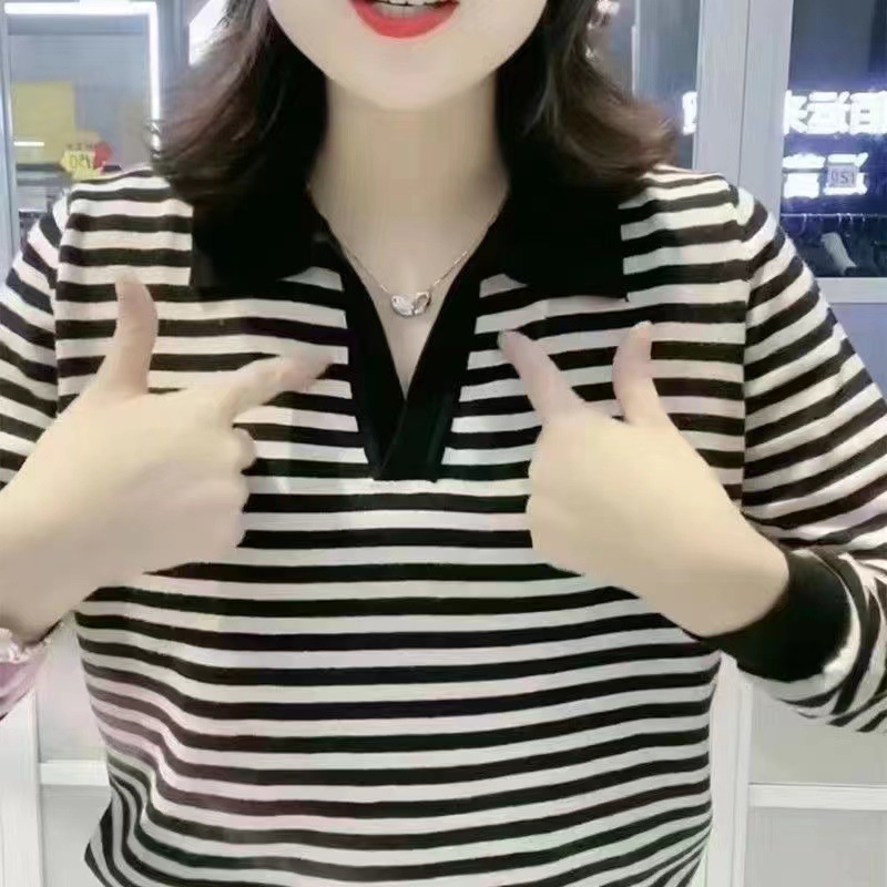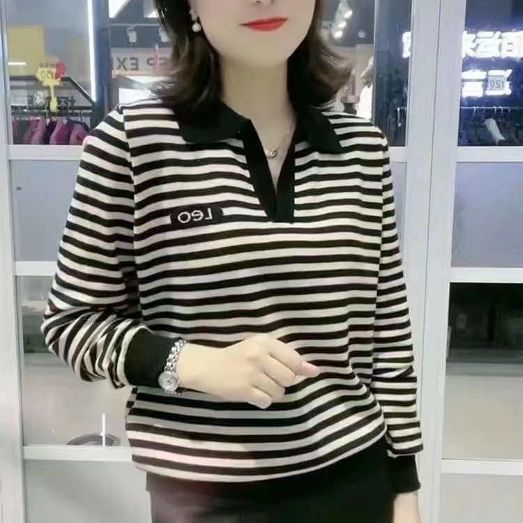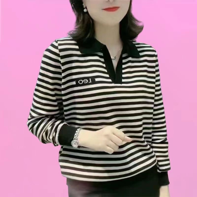 Новый стиль с длинными рукавами топ с отворотом футболка женская мода дикие рубашки большой размер мама среднего возраста весна и осень поло рубашка женщина