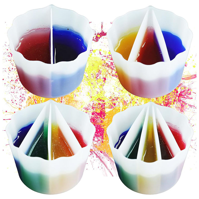 Цветная чашка с 2 отделениями; Цветная чашка с 3 отделениями; Чашка с 4 сетками цвета; 5-цветная чашка с сеткой
