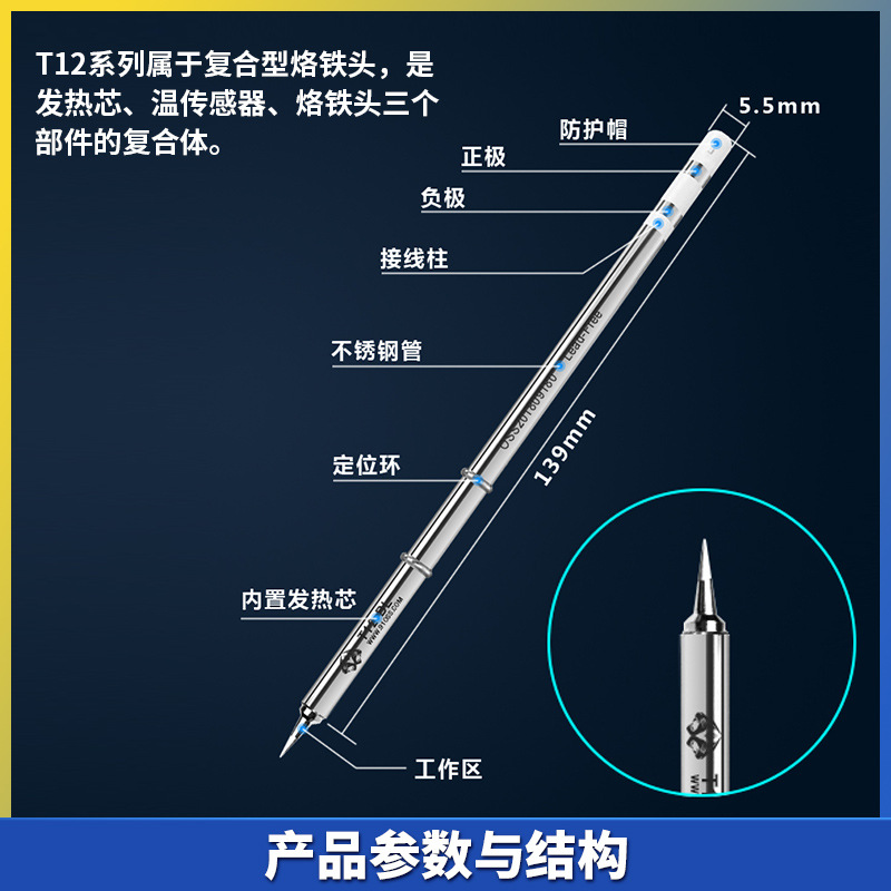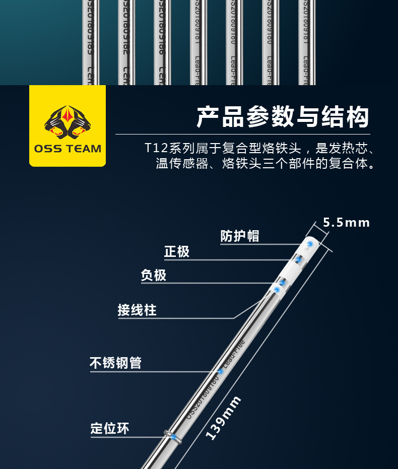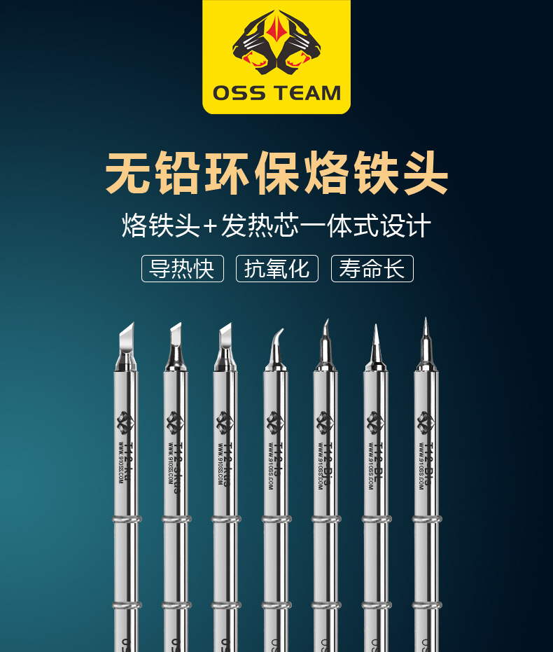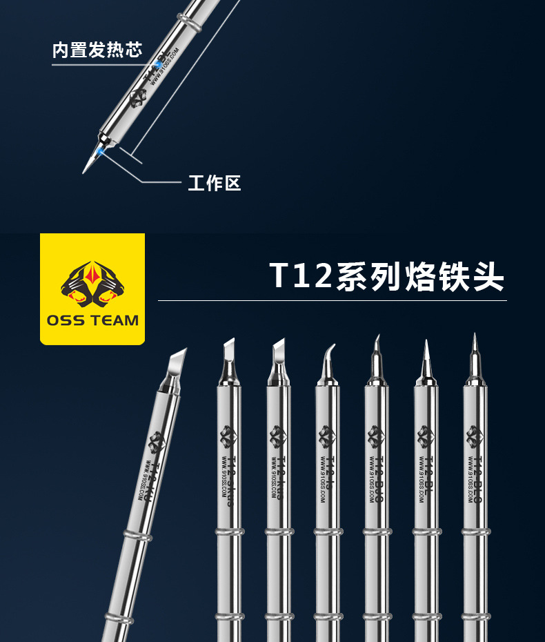 Бессвинцовая паяльная станция OSS Паяльная станция T12 Паяльное жало с длительным сроком службы Встроенный нагревательный сердечник Изогнутый наконечник Прямой наконечник ножа