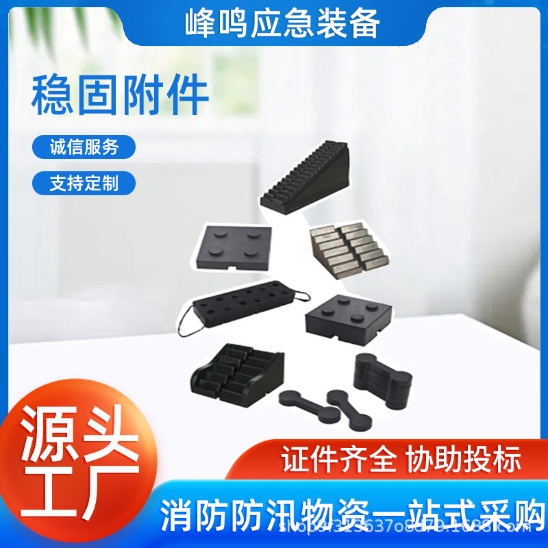 由大三角垫块和小三角垫块组成;大三角垫块:独特设计,尤其适用于对上升物体随动支撑与随时固定;斜面特有连续交错倒齿设计,防止向下滑脱;底座可灵活垫高;单件最大承重20吨;安全系数为2:1时,单件额定承重10吨;粗大的便携牵引带,确保手在危险物体外控制垫块的移动,人身更安全,并可供单手拖行多个滑梯,提高搬运效率。规格尺寸:620*200*250mm;重量:9.3kg;额定承重力10T;安全系数2:1;单位面积承重110kg/cm²。 内含货品清单:1、设备包括各类垫块、止滑器、索链、紧固带等,与救生、破拆器材配套使用,起稳固保护作用; 2、尺寸≥600x200x80毫米的长方形垫块2个,重量<8公斤; 3、尺寸>600x200x250毫米的大三角形滑梯2个,坡面必须有倒齿设计,防止滑脱,重量≤7公斤; 4、尺寸>200x200x90毫米的鞍形滑块2个,重量<2公斤; 5、尺寸>200x200x40毫米的正方形垫块5个,重量<2公斤; 6、尺寸>200x200x80毫米的正方形垫块4个,重量<3公斤; 7、尺寸≥200x200x80毫米的小三角形垫块4个,重量<2公斤; 8、联接锁片5个,用于各个方形垫块之间的固定联接; 9、紧固带4根,可与支撑杆配套一起使用
