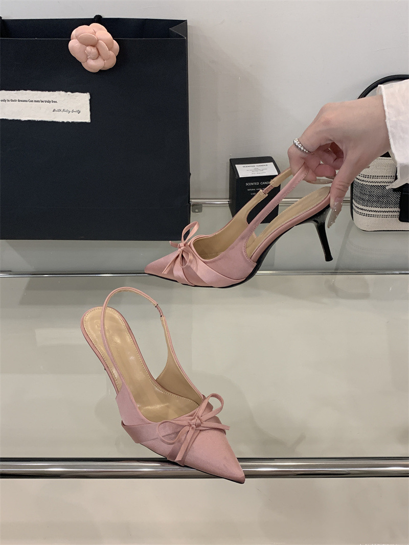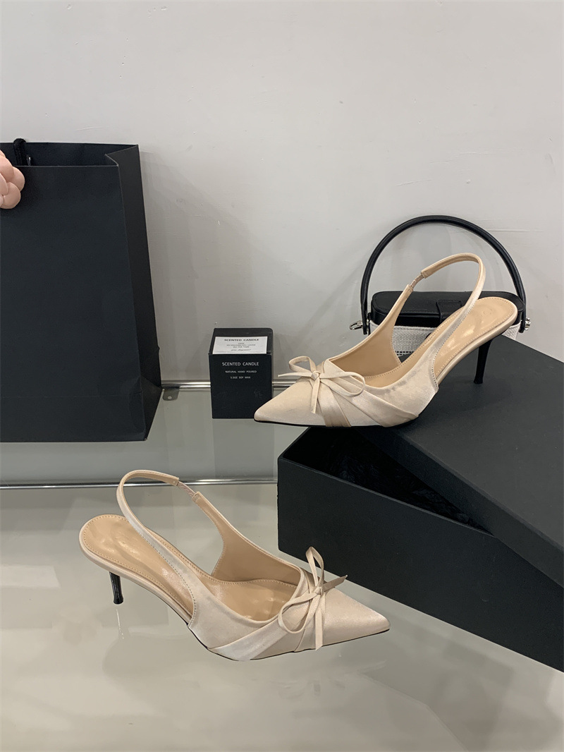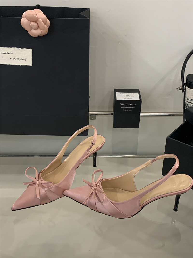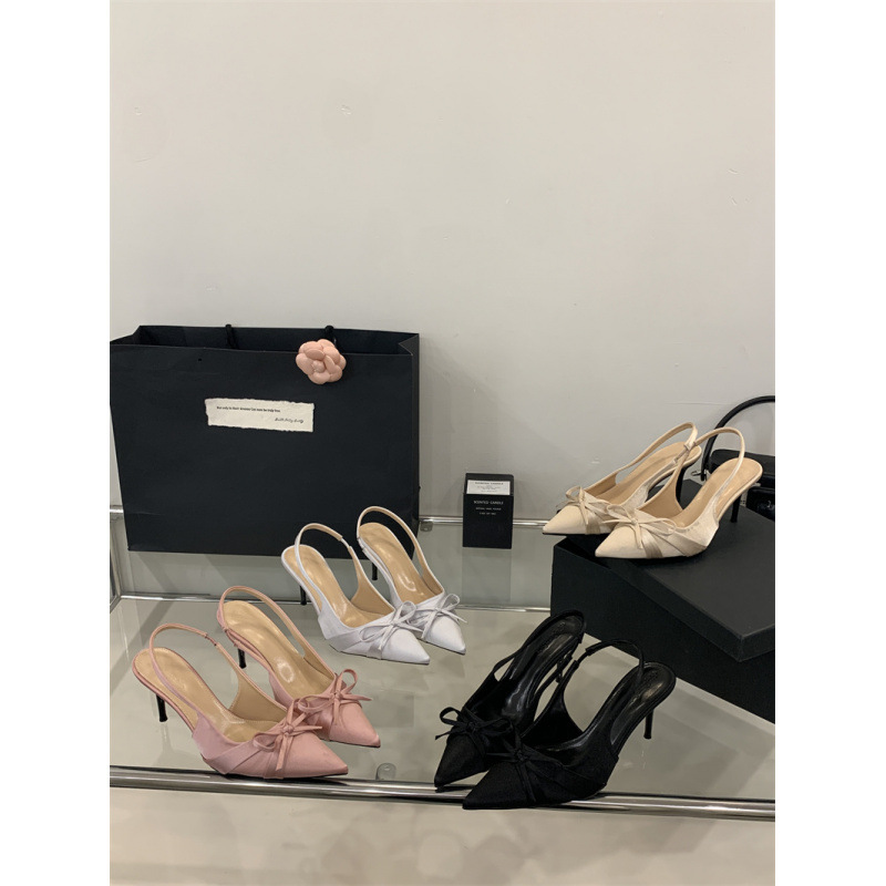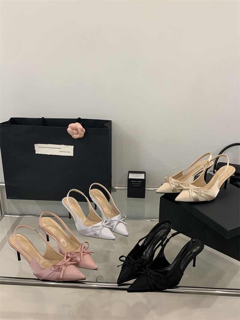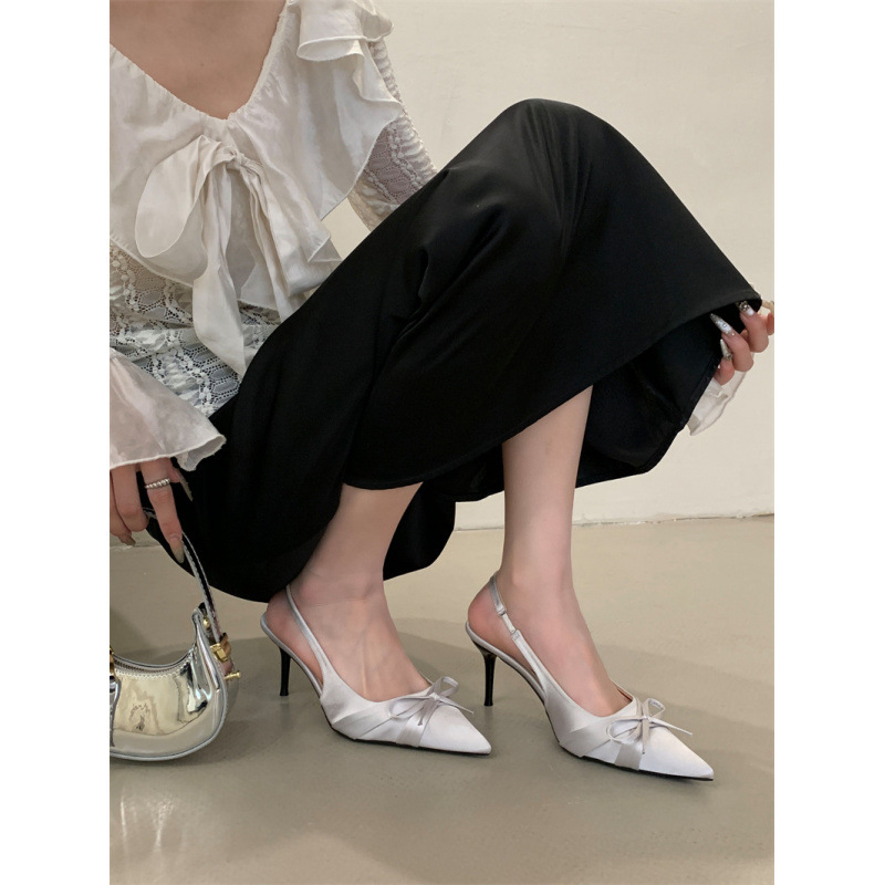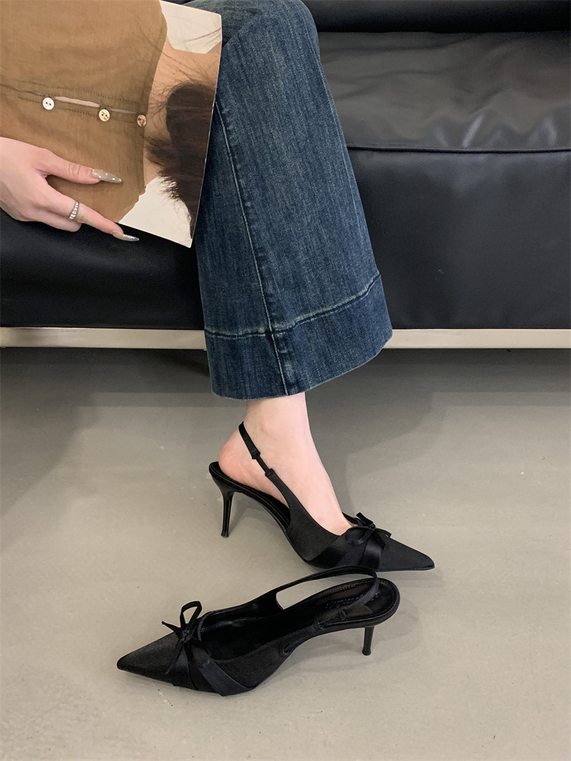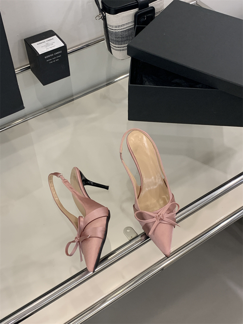 2025 новый стиль 7 см туфли на высоком каблуке с тонкими каблуками, бантом, острым носком и открытой пяткой для женщин на лето