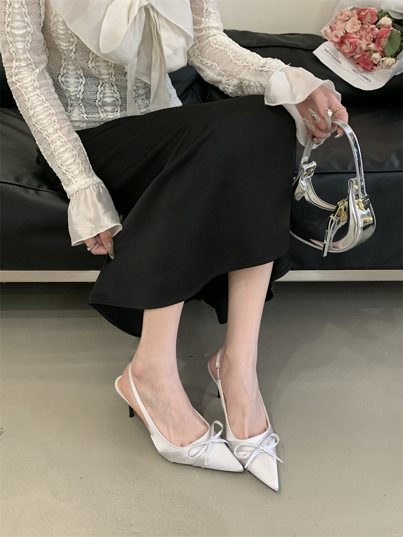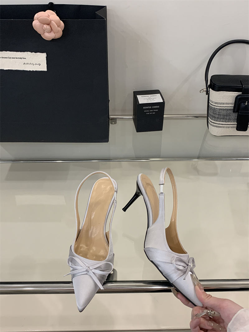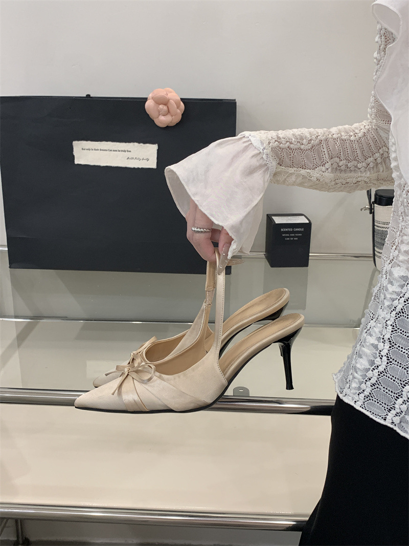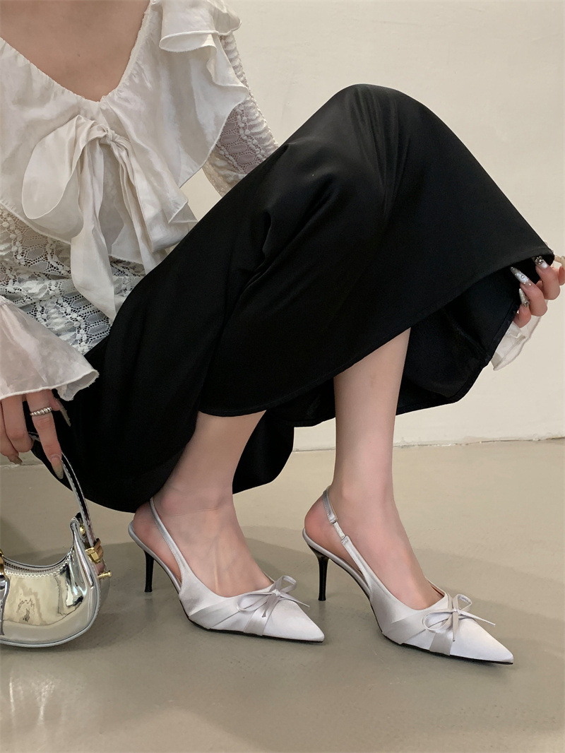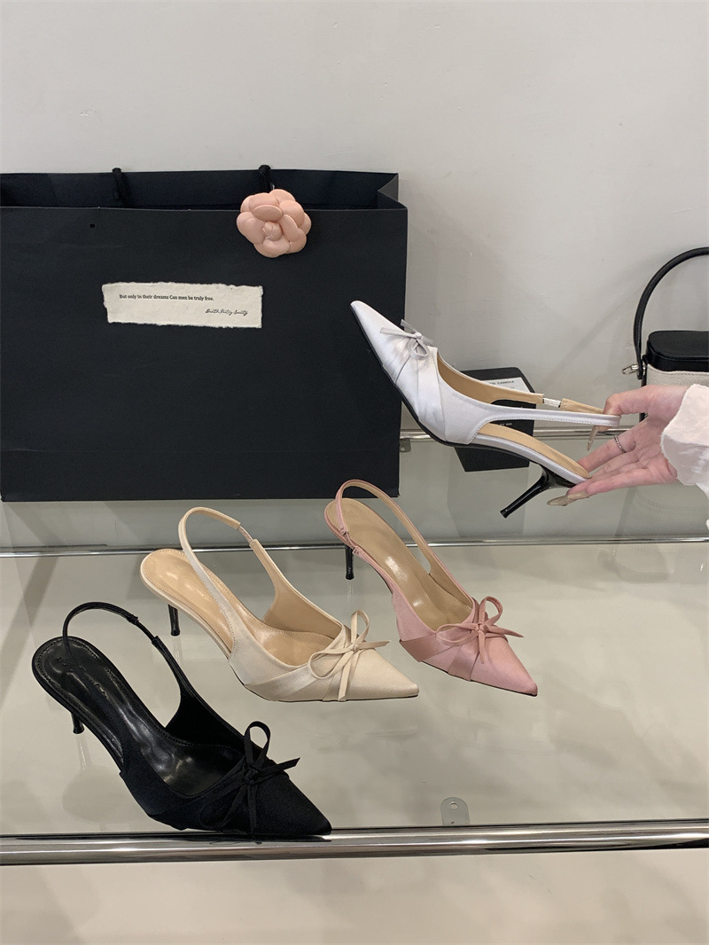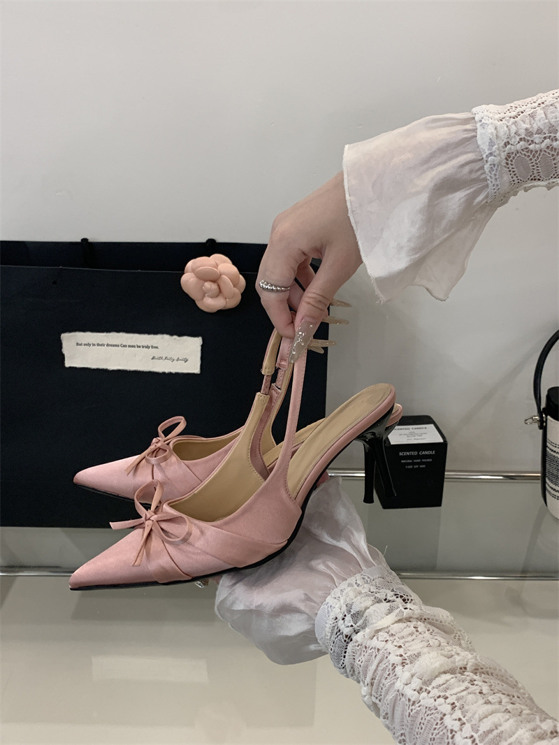 2025 новый стиль 7 см туфли на высоком каблуке с тонкими каблуками, бантом, острым носком и открытой пяткой для женщин на лето