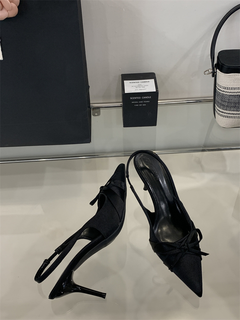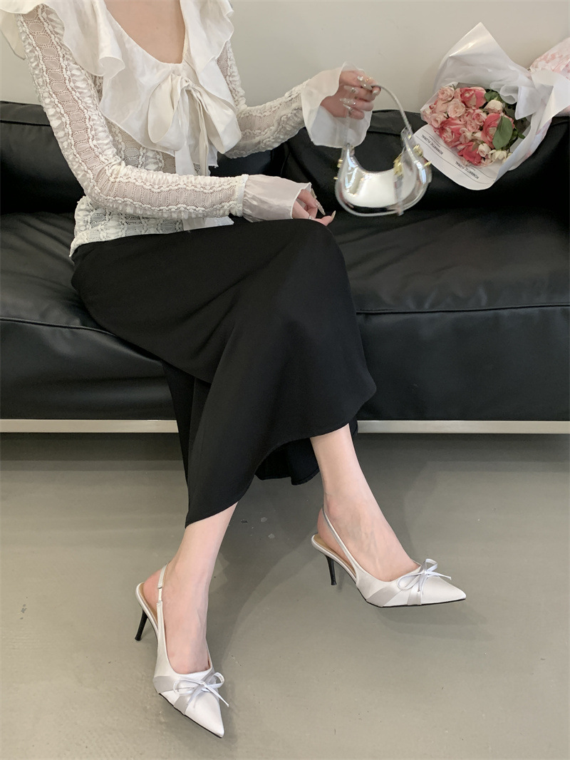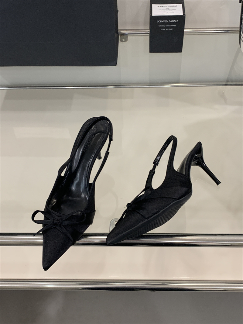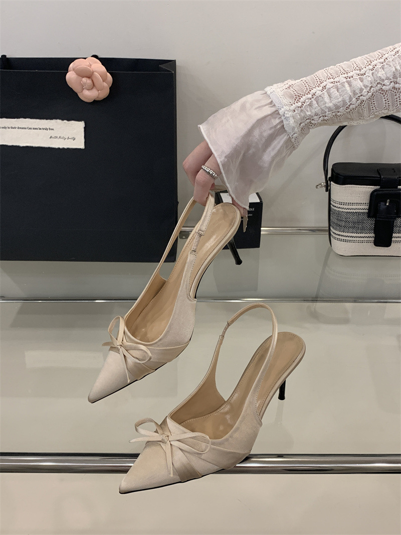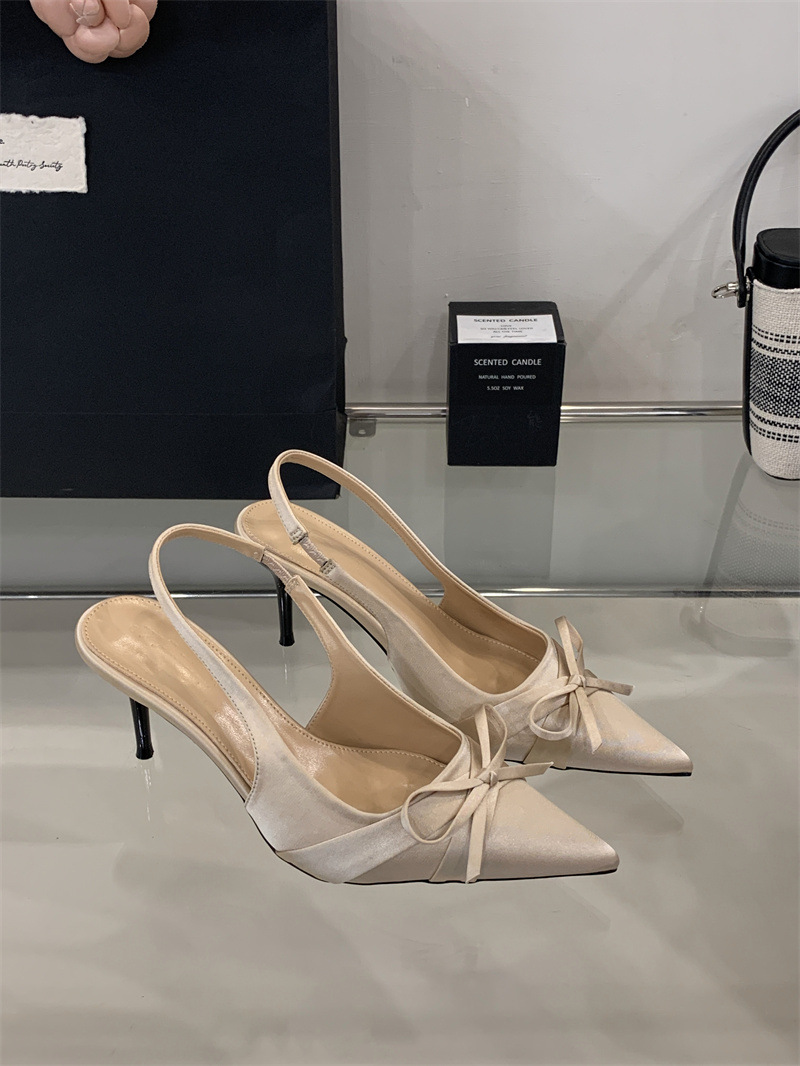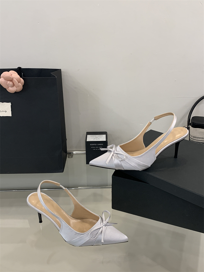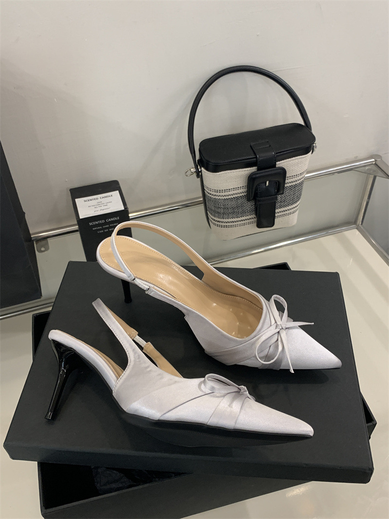 2025 новый стиль 7 см туфли на высоком каблуке с тонкими каблуками, бантом, острым носком и открытой пяткой для женщин на лето