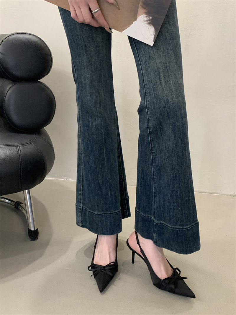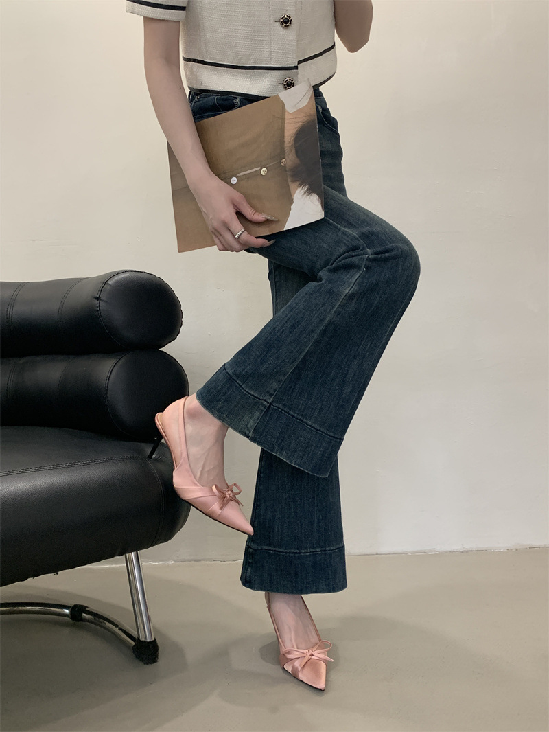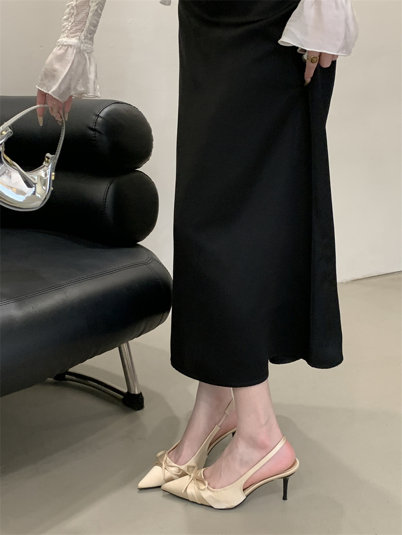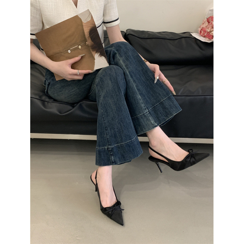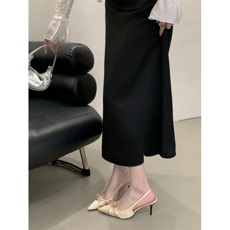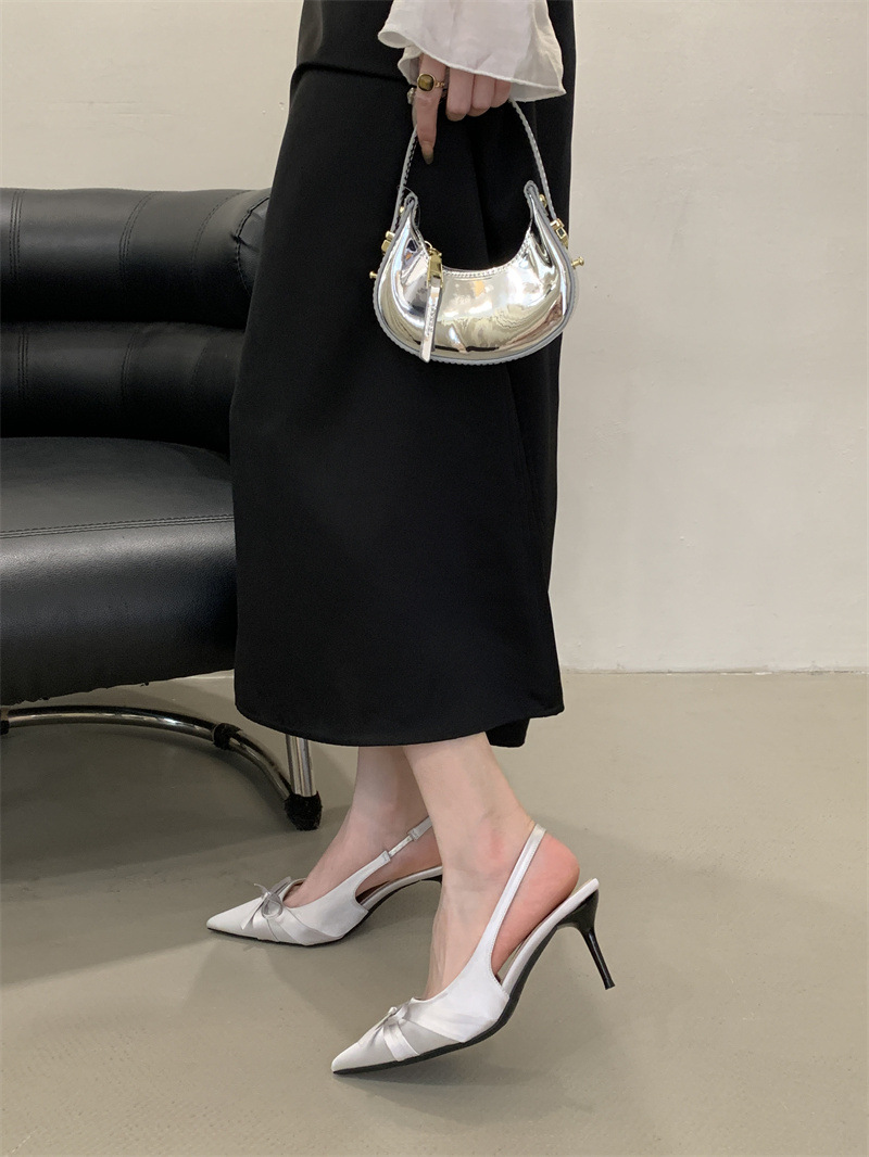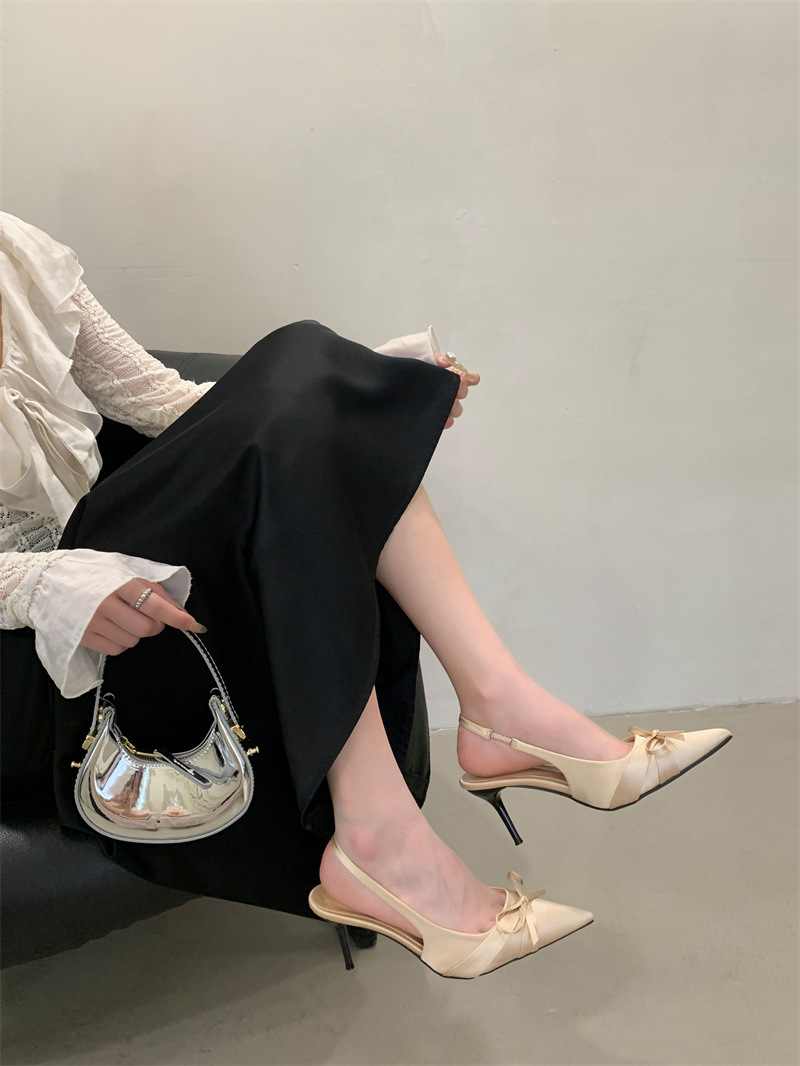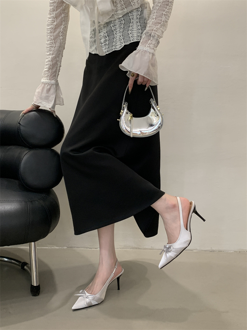 2025 новый стиль 7 см туфли на высоком каблуке с тонкими каблуками, бантом, острым носком и открытой пяткой для женщин на лето