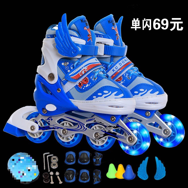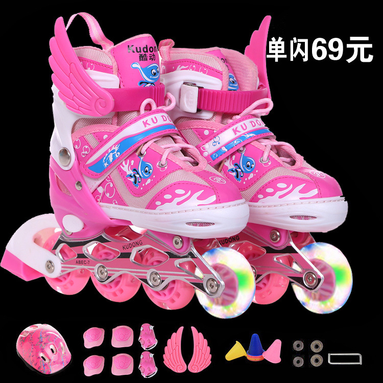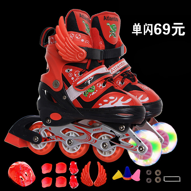 Детский комплект роликовых коньков для мальчиков и девочек, роликовые коньки, роликовые коньки для начинающих, полная вспышка, регулируемый размер