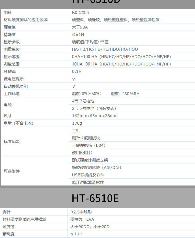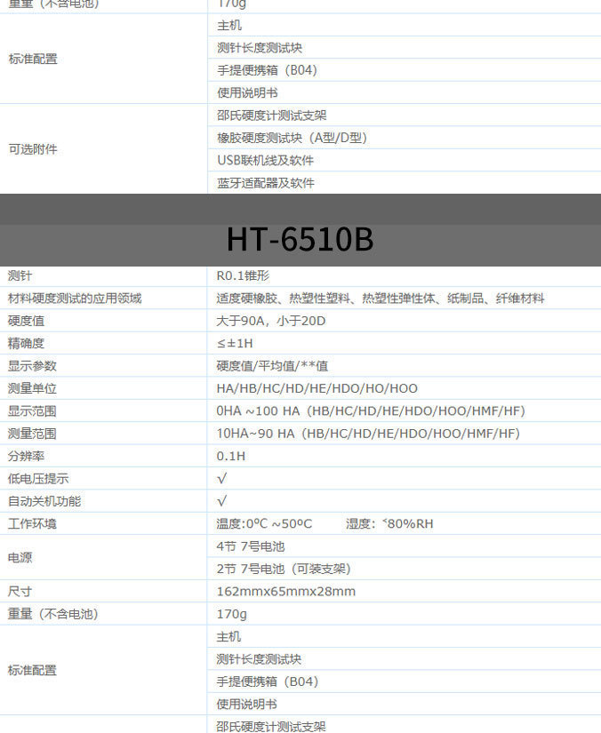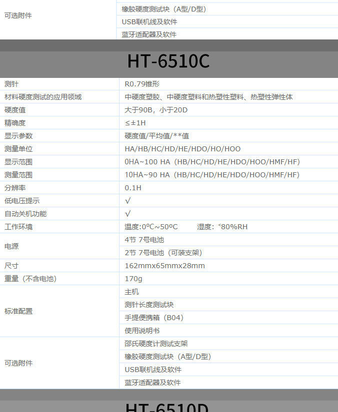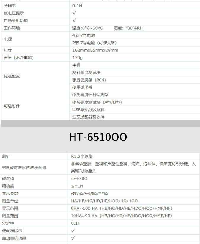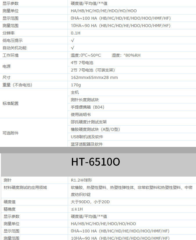HT-6510A (диапазон 0~100 Га); HT-6510B (диапазон 0–100HB); HT-6510C (диапазон 0~100HC); HT-6510D (диапазон 0~100HD); HT6510E (диапазон 0–100HE); HT6510DO (диапазон 0~100HO); HT6510OO (диапазон 0~100HOO)