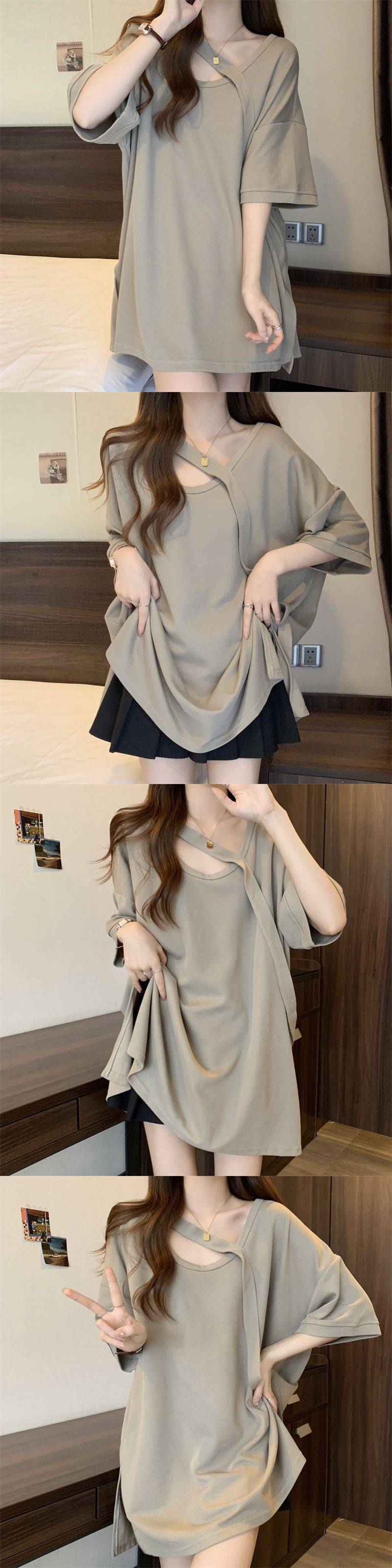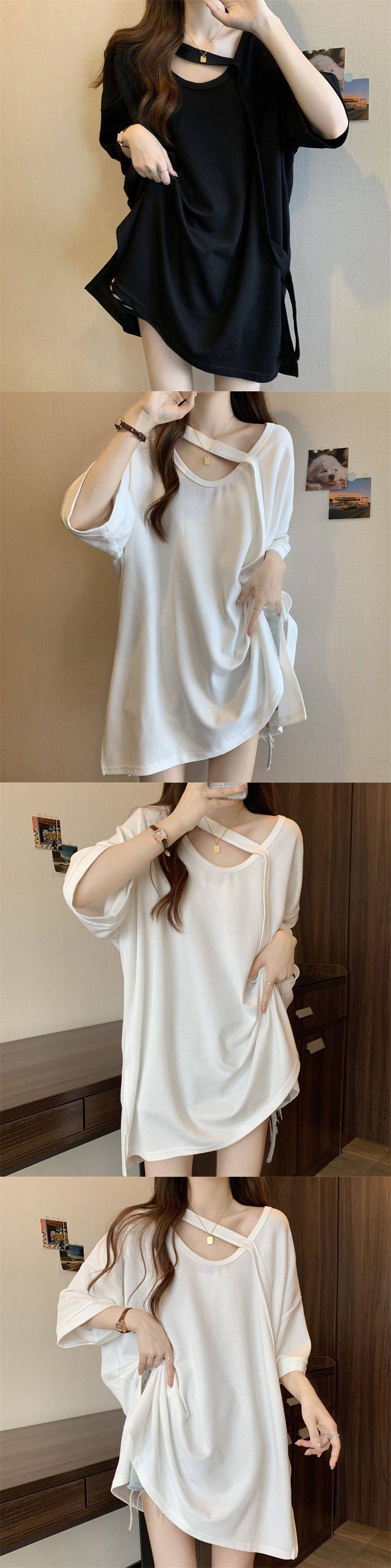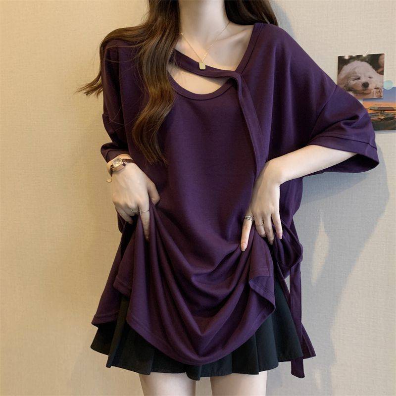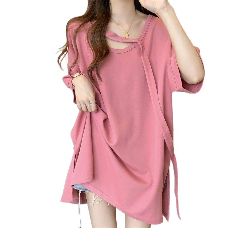 Футболка с короткими рукавами большого размера среднего размера женская летняя новая свободная тонкая конструкция