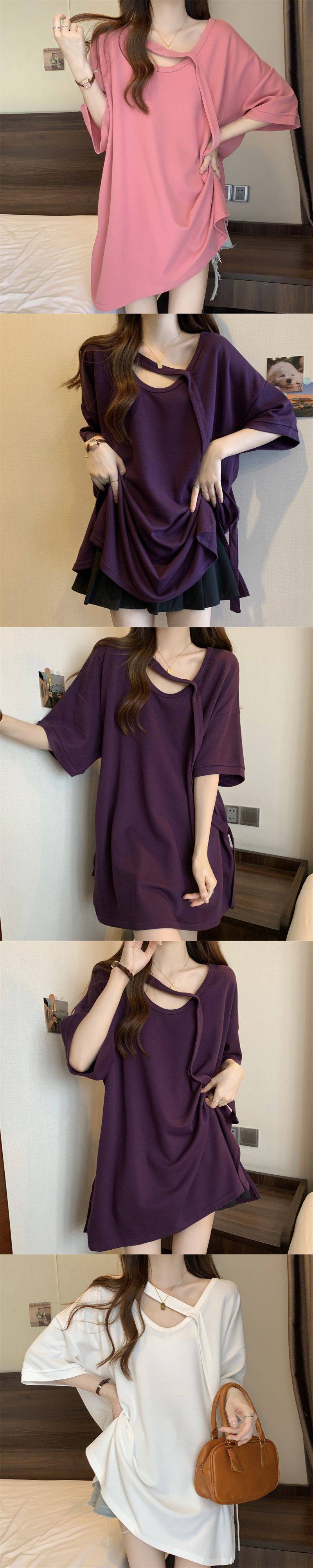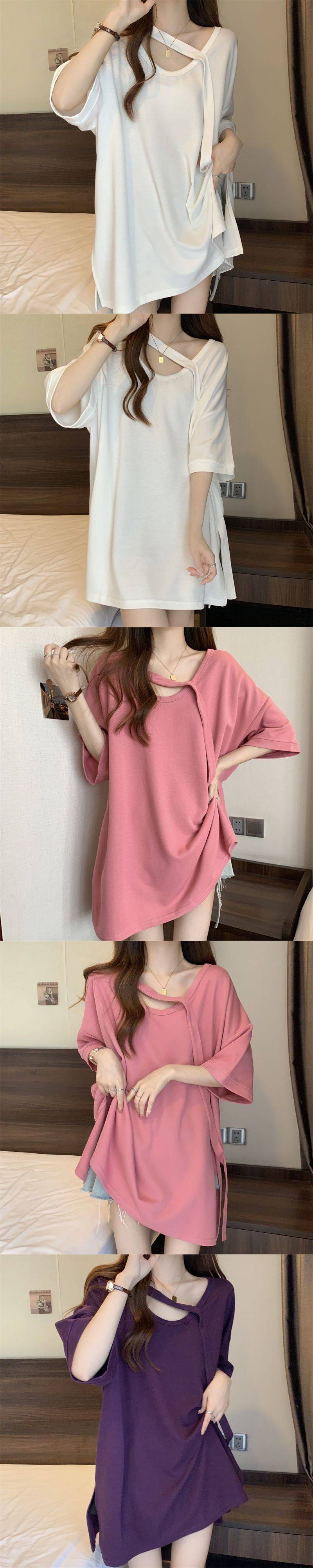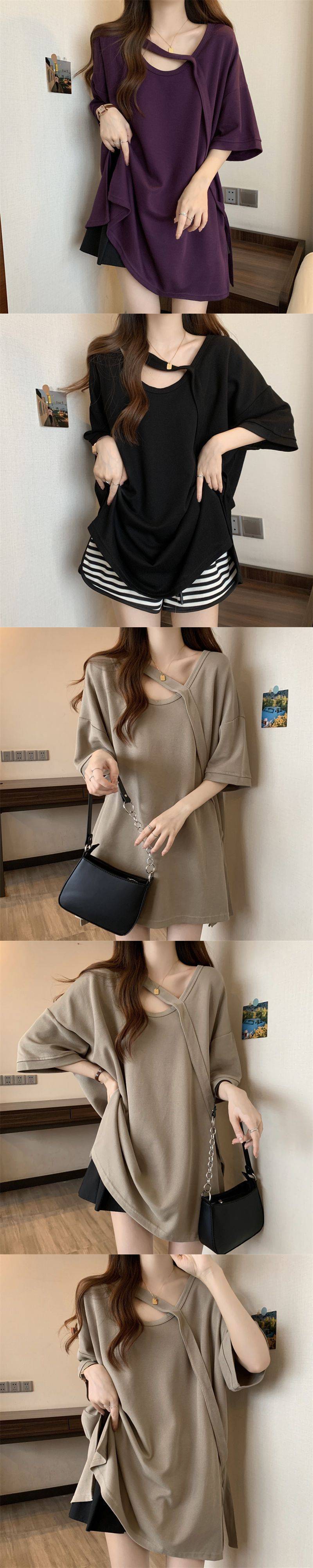 Футболка с короткими рукавами большого размера среднего размера женская летняя новая свободная тонкая конструкция