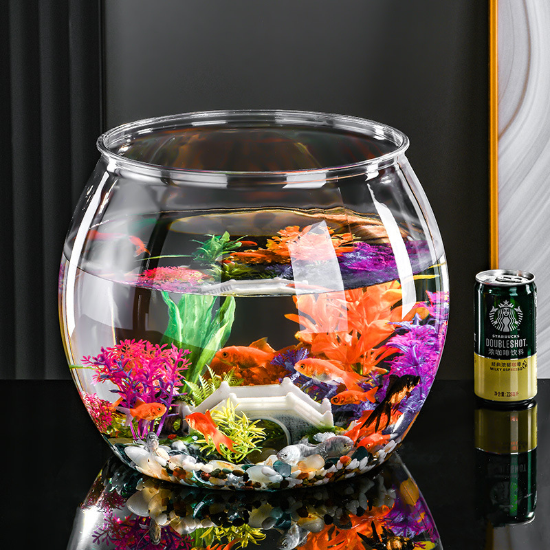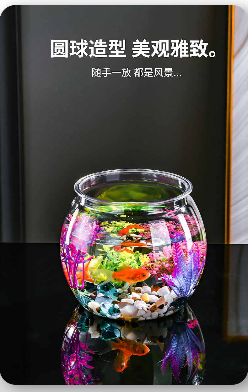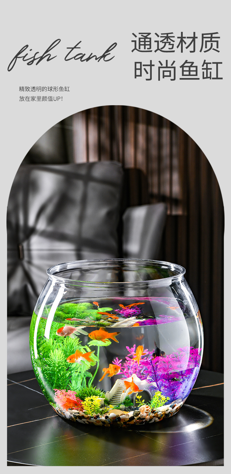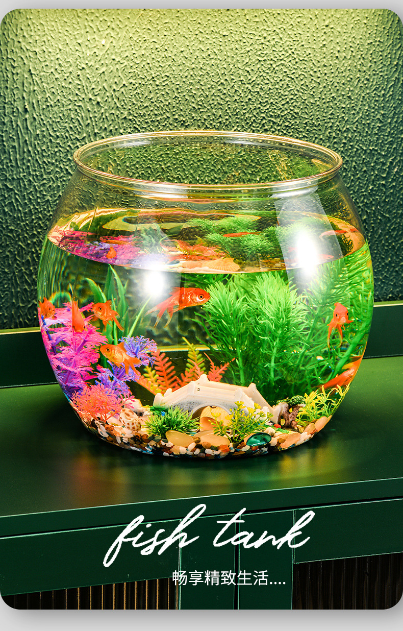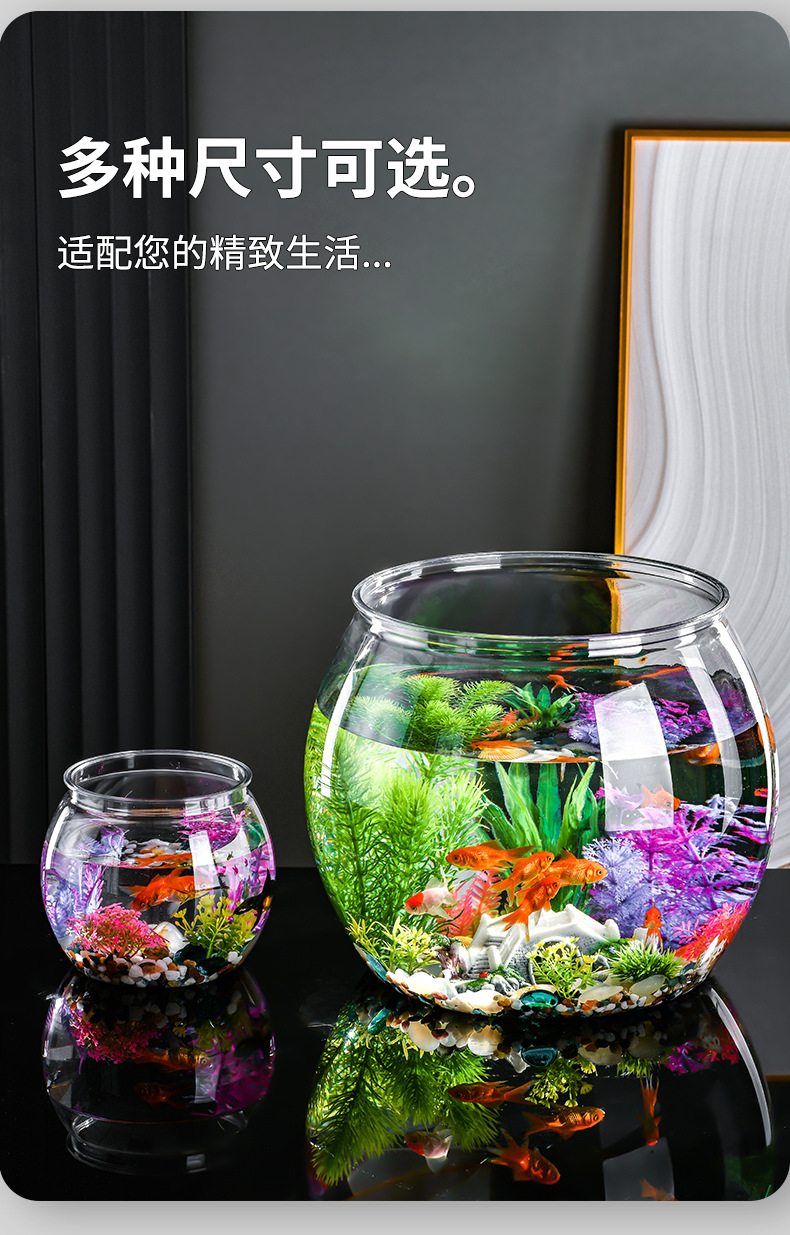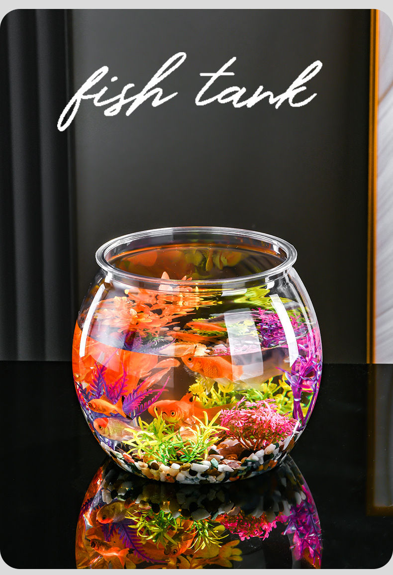 Аквариум пластиковый прозрачный для гостиной, офиса, золотая рыбка, зеленое растение, круглый настольный декоративный маленький ландшафтный экологический аквариум для золотых рыбок