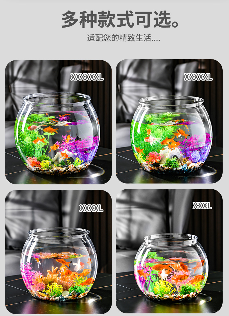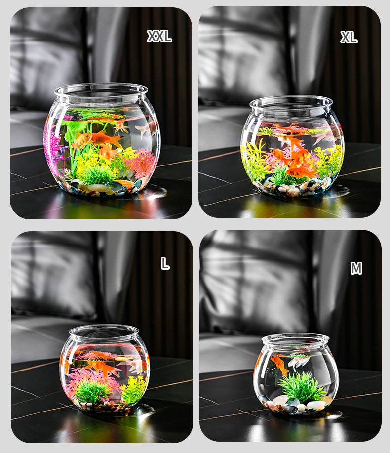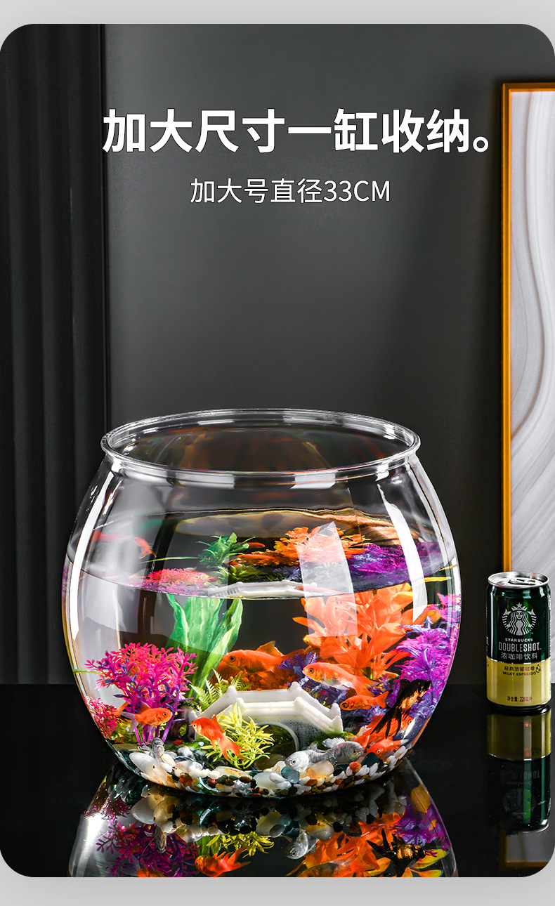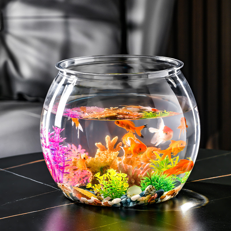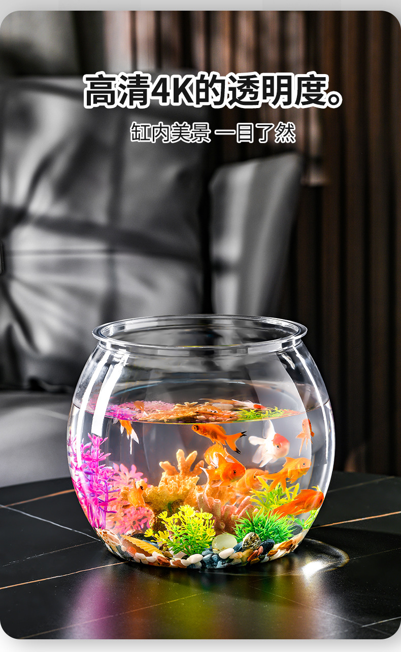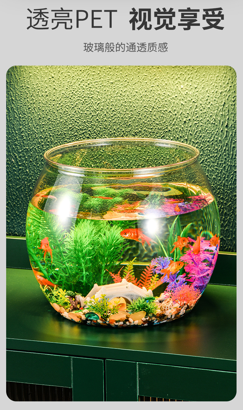 Аквариум пластиковый прозрачный для гостиной, офиса, золотая рыбка, зеленое растение, круглый настольный декоративный маленький ландшафтный экологический аквариум для золотых рыбок