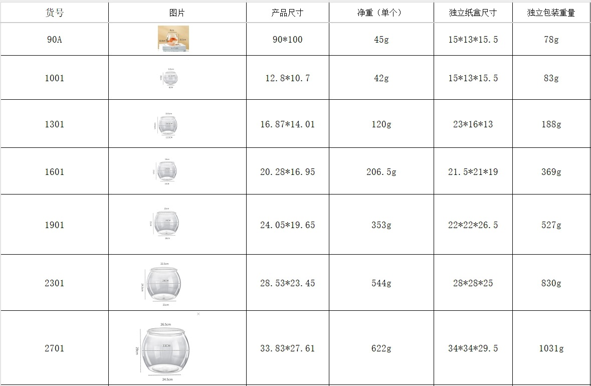 Супер мини-аквариум【90А】; Мини-аквариум【1001】; Маленький аквариум【5033-9】; Средний аквариум【1301】; Большой аквариум【1601】; Очень большой аквариум【1901】; Очень большой аквариум【5020-19】; Очень большой аквариум【2301】; Аквариум Big Mac【2701】