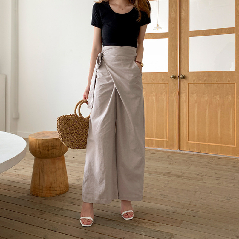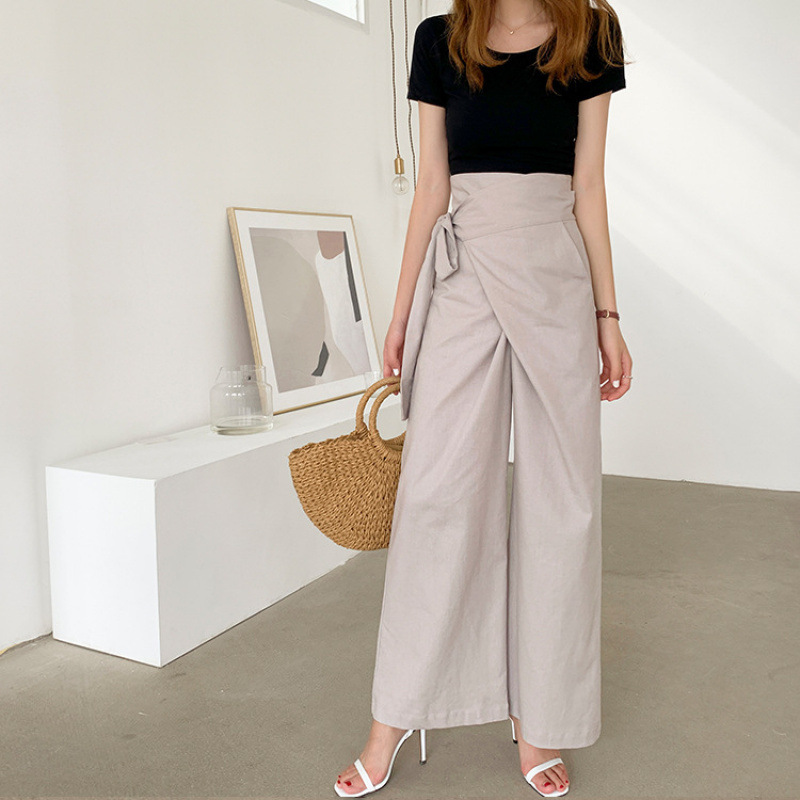 Реальный снимок в корейском стиле, свободные широкие брюки, простые однотонные повседневные длинные брюки с завязками по бокам для женщин