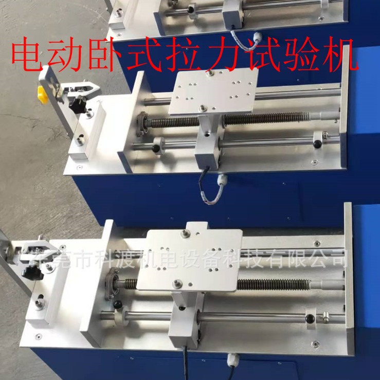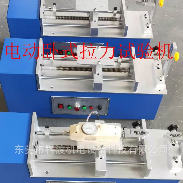本機為電動式拉力試機,以馬達傳動裝置帶動軸承絲杆上升或下降,外觀精緻,結構,試件經拉伸後,可由拉力計讀出拉力值,求得試件之抗拉強度。