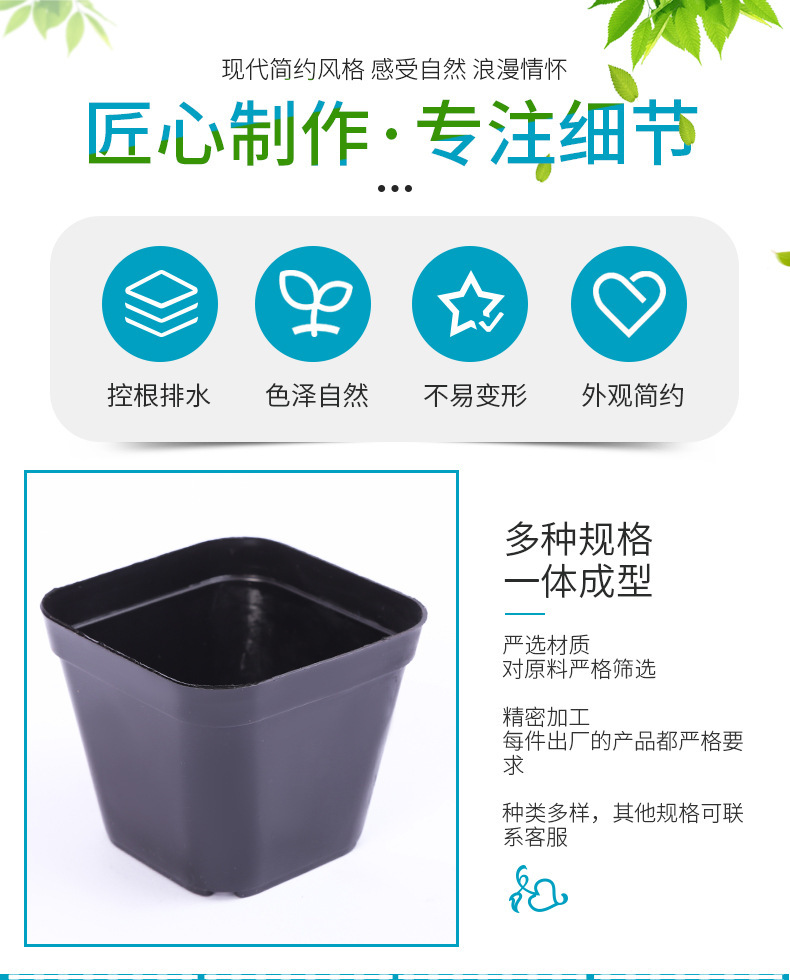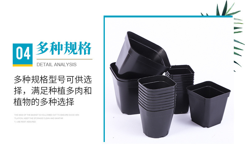 Посадка мясистых маленьких черных квадратов пластиковые толстые квадратные маленькие цветочные горшки черные квадратные простые 5,5 квадратных 7 квадратных 10 квадратных черных цветочных горшков