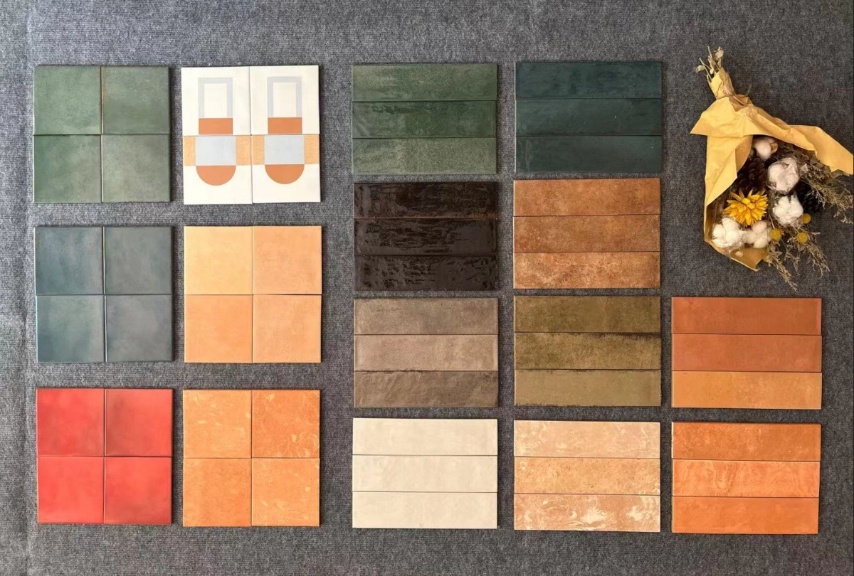 Фошаньские ретро-кирпичи ручной работы из цельной керамики, имитация глины, градиентные кирпичи для ванной комнаты, молочный чай, гостиничный бар, глазурованная пасторальная плитка
